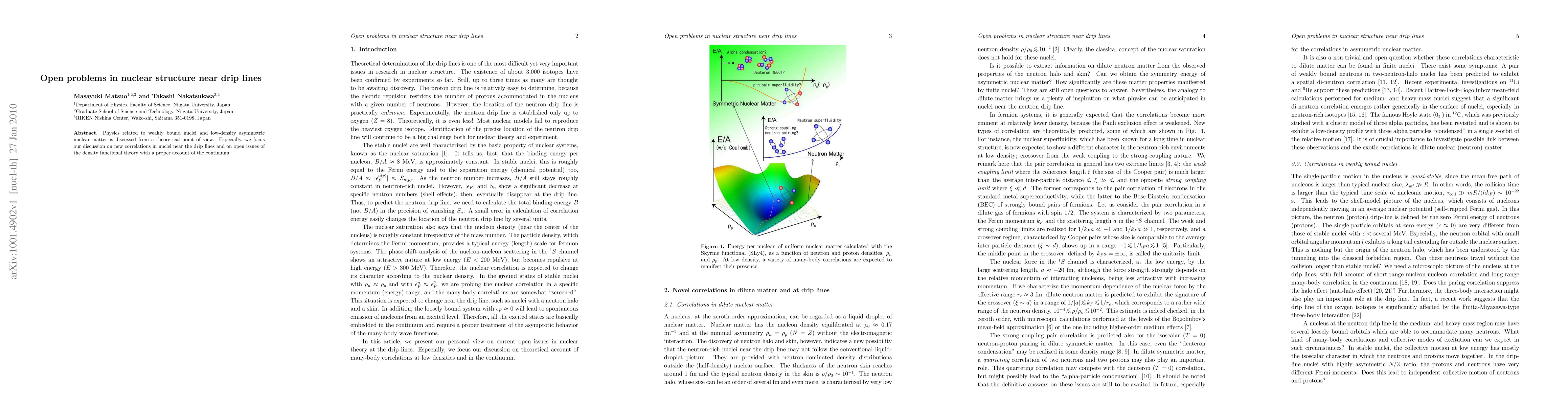 Summary: This paper explores theoretical aspects of weakly bound nuclei near drip lines, emphasizing new nuclear correlations and unresolved issues in density functional theory when accounting for the continuum. It highlights open problems in understanding low-density asymmetric nuclear matter.