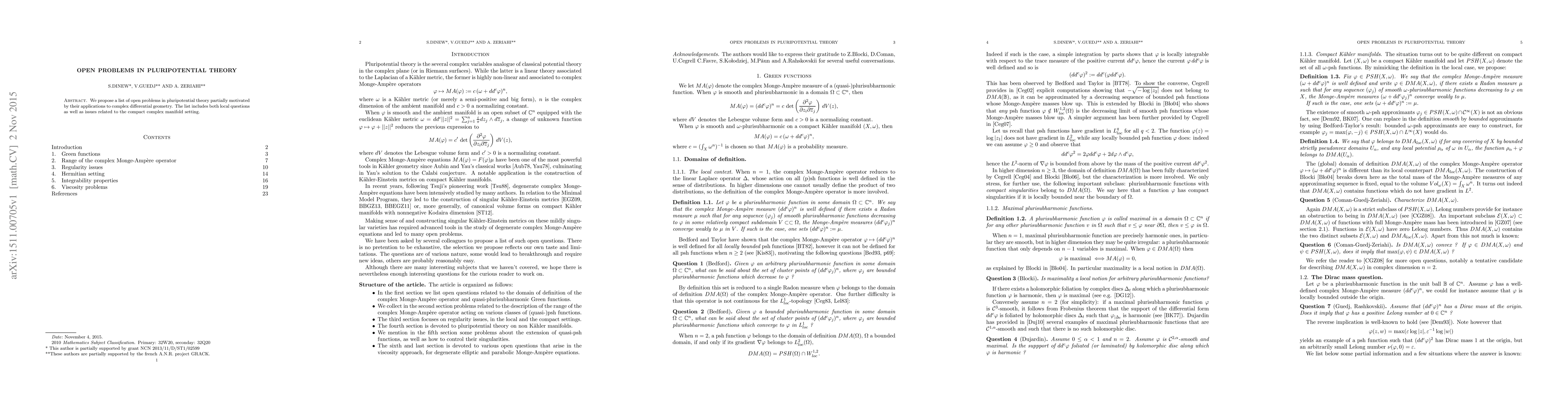 This paper identifies open problems in pluripotential theory, a branch of mathematics that studies complex geometric structures, highlighting the need for further research to advance our understanding of these topics.