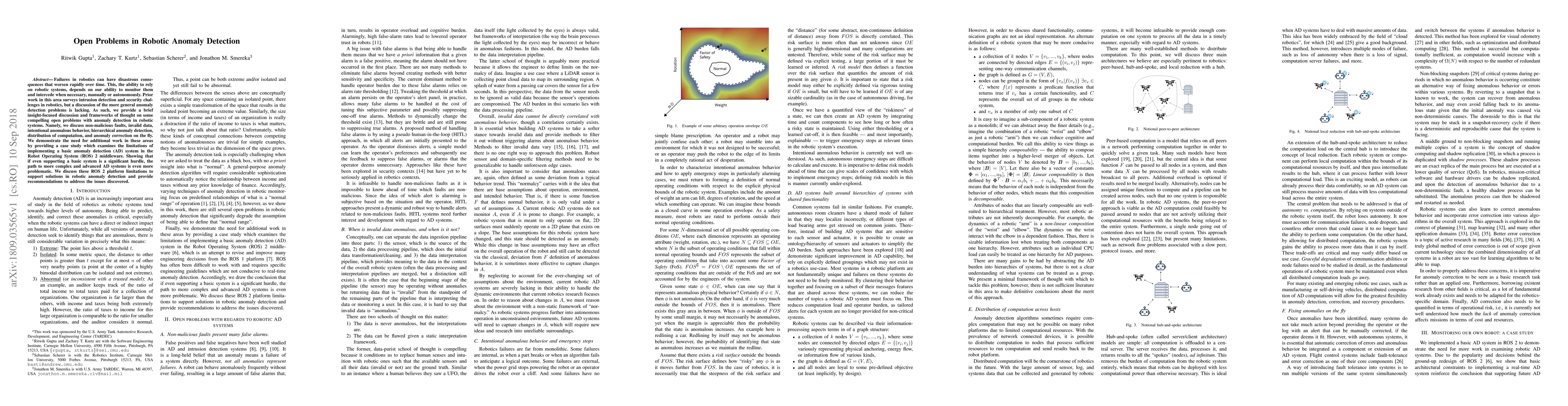 Failures in robotics can have disastrous consequences that worsen rapidly over time. This, the ability to rely on robotic systems, depends on our ability to monitor them and intercede when necessary, manually or autonomously. Prior work in this area surveys intrusion detection and security challenges in robotics, but a discussion of the more general anomaly detection problems is lacking. As such, we provide a brief insight-focused discussion and frameworks of thought on some compelling open problems with anomaly detection in robotic systems. Namely, we discuss non-malicious faults, invalid data, intentional anomalous behavior, hierarchical anomaly detection, distribution of computation, and anomaly correction on the fly. We demonstrate the need for additional work in these areas by providing a case study which examines the limitations of implementing a basic anomaly detection (AD) system in the Robot Operating System (ROS) 2 middleware. Showing that if even supporting a basic system is a significant hurdle, the path to more complex and advanced AD systems is even more problematic. We discuss these ROS 2 platform limitations to support solutions in robotic anomaly detection and provide recommendations to address the issues discovered.