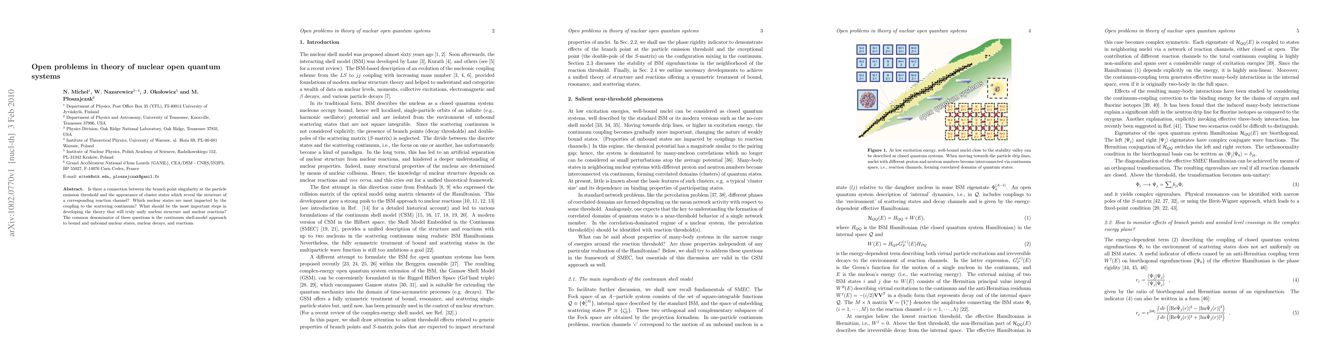 Is there a connection between the branch point singularity at the particle emission threshold and the appearance of cluster states which reveal the structure of a corresponding reaction channel? Which nuclear states are most impacted by the coupling to the scattering continuum? What should be the most important steps in developing the theory that will truly unify nuclear structure and nuclear reactions? The common denominator of these questions is the continuum shell-model approach to bound and unbound nuclear states, nuclear decays, and reactions.