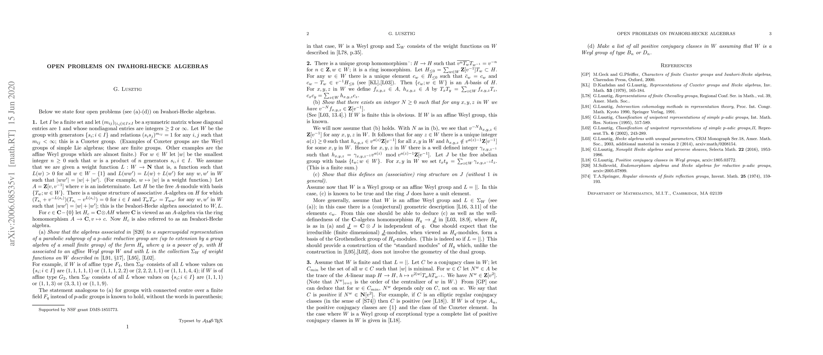 The research paper presents novel open problems on Iwahori-Hecke algebras that have not been previously studied