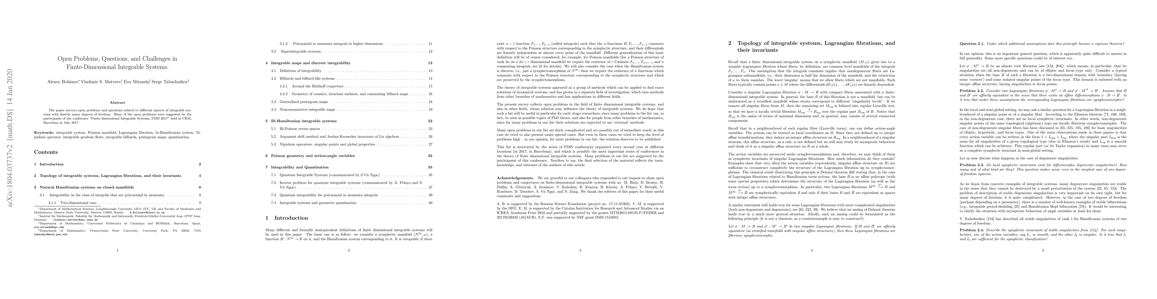 This paper surveys open problems in integrable systems with finitely many degrees of freedom, highlighting challenges and questions from a 2017 conference. It presents key findings and opens new avenues for research in this field.