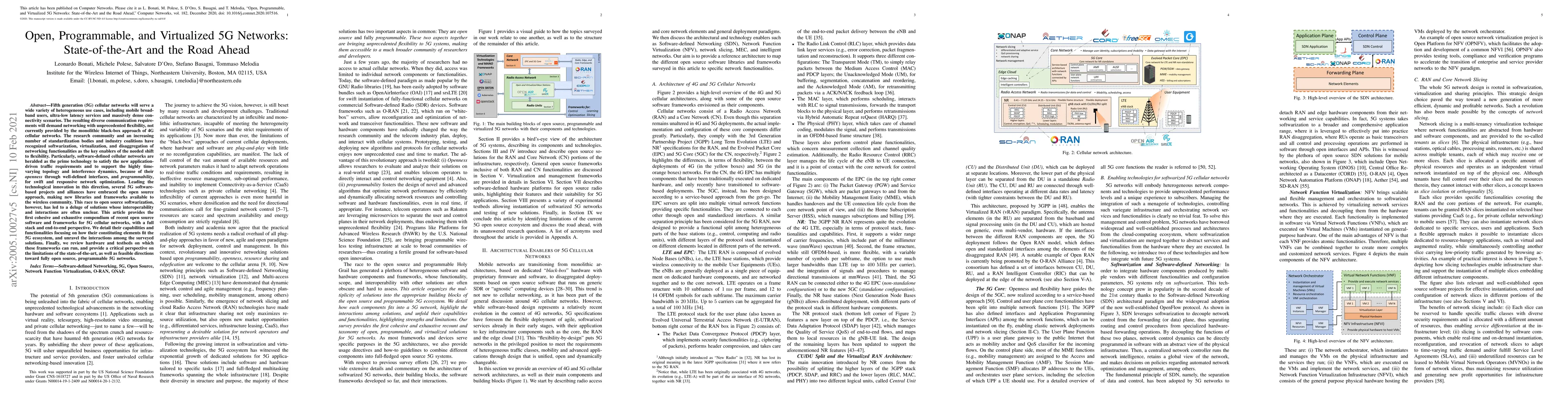Fifth generation (5G) cellular networks will serve a wide variety of heterogeneous use cases, including mobile broadband users, ultra-low latency services and massively dense connectivity scenarios. The resulting diverse communication requirements will demand networking with unprecedented flexibility, not currently provided by the monolithic black-box approach of 4G cellular networks. The research community and an increasing number of standardization bodies and industry coalitions have recognized softwarization, virtualization, and disaggregation of networking functionalities as the key enablers of the needed shift to flexibility. Particularly, software-defined cellular networks are heralded as the prime technology to satisfy the new application-driven traffic requirements and to support the highly time-varying topology and interference dynamics, because of their openness through well-defined interfaces, and programmability, for swift and responsive network optimization. Leading the technological innovation in this direction, several 5G software-based projects and alliances have embraced the open source approach, making new libraries and frameworks available to the wireless community. This race to open source softwarization, however, has led to a deluge of solutions whose interoperability and interactions are often unclear. This article provides the first cohesive and exhaustive compendium of recent open source software and frameworks for 5G cellular networks, with a full stack and end-to-end perspective. We detail their capabilities and functionalities focusing on how their constituting elements fit the 5G ecosystem, and unravel the interactions among the surveyed solutions. Finally, we review hardware and testbeds on which these frameworks can run, and discuss the limitations of the state-of-the-art, as well as feasible directions toward fully open source, programmable 5G networks.
