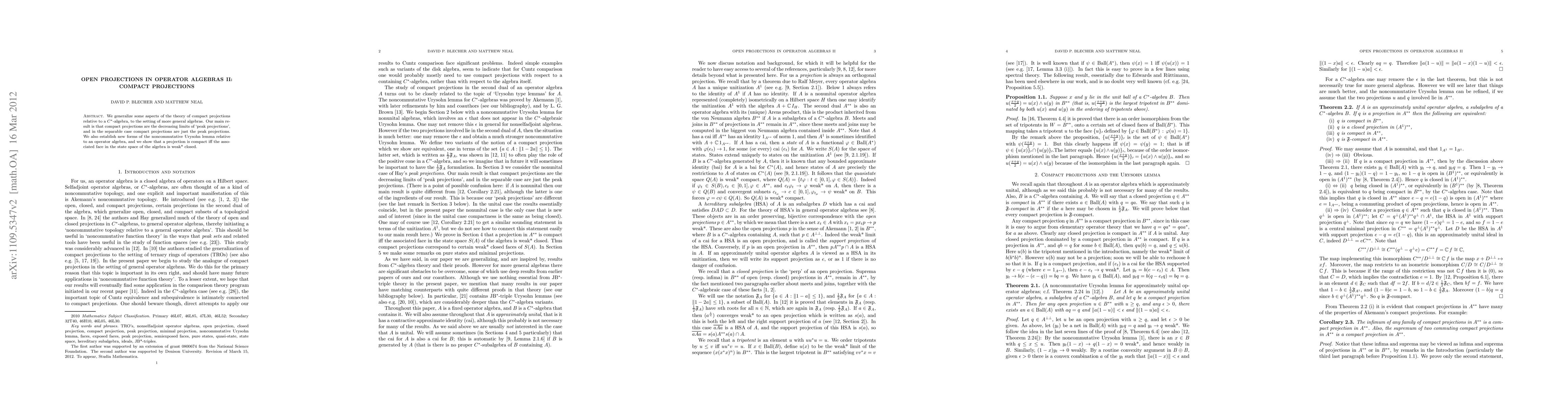 This paper generalizes the theory of compact projections in operator algebras, proving that compact projections are the decreasing limits of peak projections, especially in separable cases where they coincide. It also introduces new forms of the noncommutative Urysohn lemma and establishes the equivalence between compact projections and weak* closed faces in the state space of the algebra.