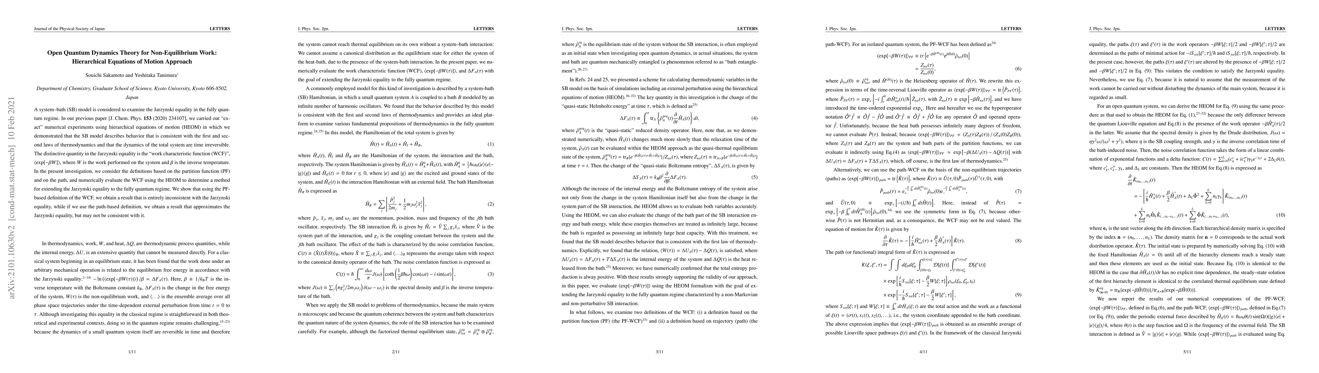 Researchers investigated the Jarzynski equality in a fully quantum regime using hierarchical equations of motion, finding that it's only approximately true under certain definitions, highlighting challenges in applying thermodynamic principles to non-equilibrium quantum systems.