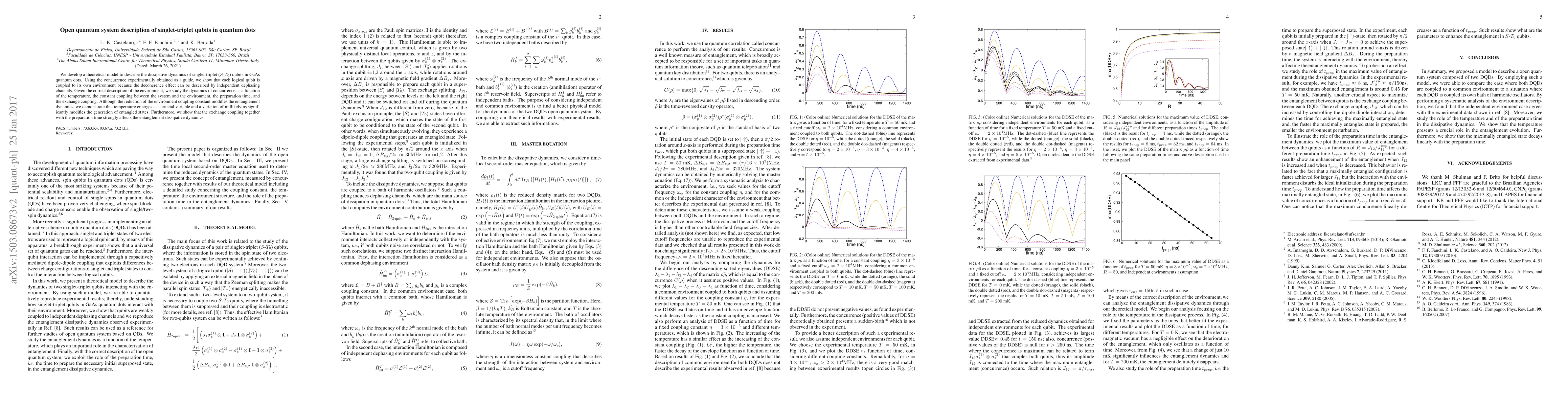 We develop a theoretical model to describe the dissipative dynamics of singlet-triplet (S-T_0) qubits in GaAs quantum dots. Using the concurrence experimentally obtained as a guide, we show that each logical qubit is coupled to its own environment because the decoherence effect can be described by independent dephasing channels. Given the correct description of the environment, we study the dynamics of concurrence as a function of the temperature, the constant coupling between the system and the environment, the preparation time, and the exchange coupling. Although the reduction of the environment coupling constant modifies the entanglement dynamics, we demonstrate that temperature emerges as a crucial variable and a variation of millikelvins significantly modifies the generation of entangled states. Furthermore, we show that the exchange coupling together with the preparation time strongly affects the entanglement dissipative dynamics.