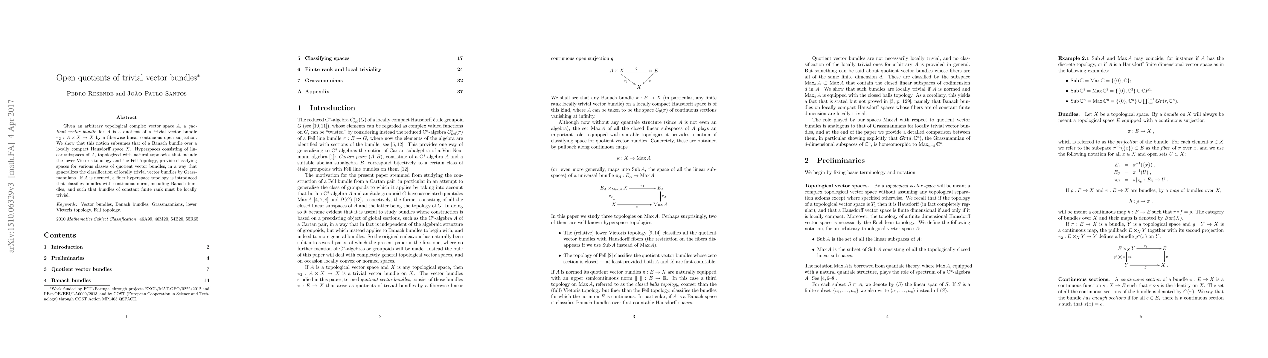 Given an arbitrary topological complex vector space $A$, a quotient vector bundle for $A$ is a quotient of a trivial vector bundle $\pi_2:A\times X\to X$ by a fiberwise linear continuous open surjection. We show that this notion subsumes that of a Banach bundle over a locally compact Hausdorff space $X$. Hyperspaces consisting of linear subspaces of $A$, topologized with natural topologies that include the lower Vietoris topology and the Fell topology, provide classifying spaces for various classes of quotient vector bundles, in a way that generalizes the classification of locally trivial vector bundles by Grassmannians. If $A$ is normed, a finer hyperspace topology is introduced that classifies bundles with continuous norm, including Banach bundles, and such that bundles of constant finite rank must be locally trivial.