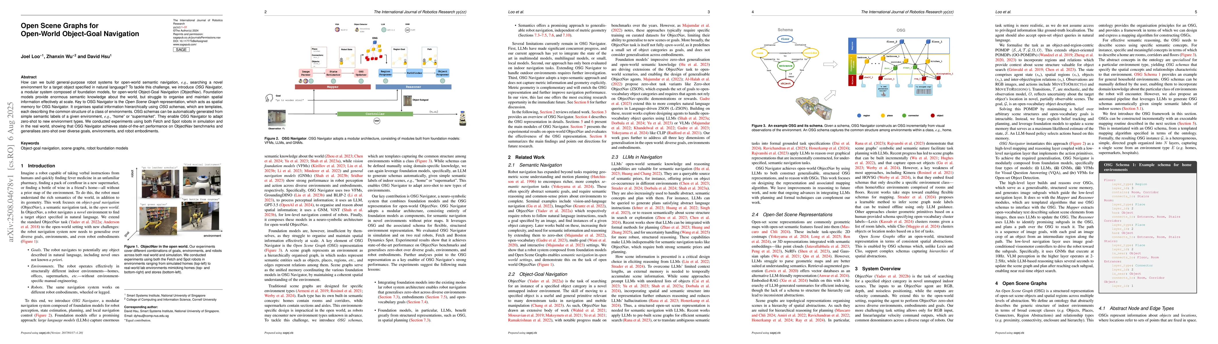 The research introduces OSG Navigator, a modular system using Open Scene Graphs (OSGs) for open-world object-goal navigation. OSG Navigator, adaptable to new environments with zero-shot learning via OSG schemas, outperforms existing methods in ObjectNav benchmarks using both Fetch and Spot robots in simulation and real-world scenarios.