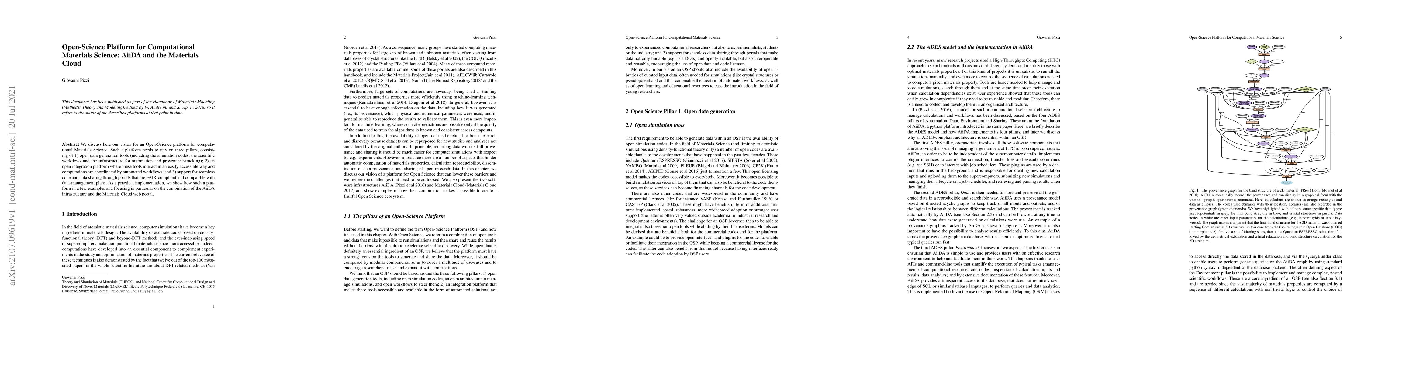 This paper envisions an open-science platform for computational materials science, built on open data tools, an integration platform for coordinated computations, and FAIR-compliant portals for code and data sharing. The AiiDA infrastructure and Materials Cloud web portal serve as practical implementations of this vision.