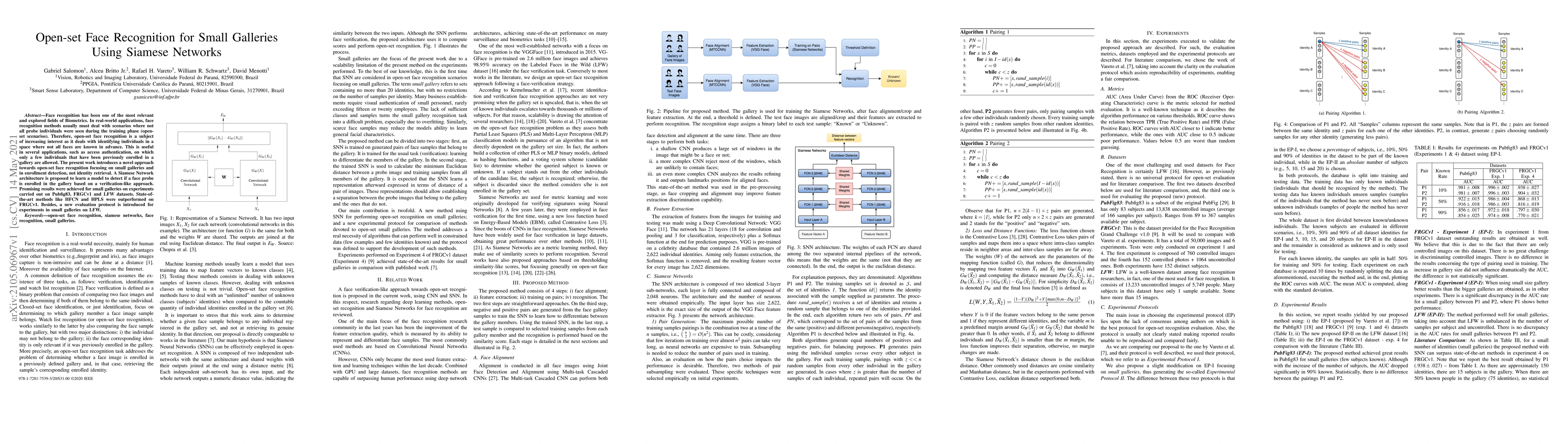 This paper proposes a Siamese Network architecture for open-set face recognition in small galleries, focusing on detection of enrolled individuals rather than identity retrieval. The method outperforms state-of-the-art techniques and introduces a new evaluation protocol for small gallery experiments on LFW.