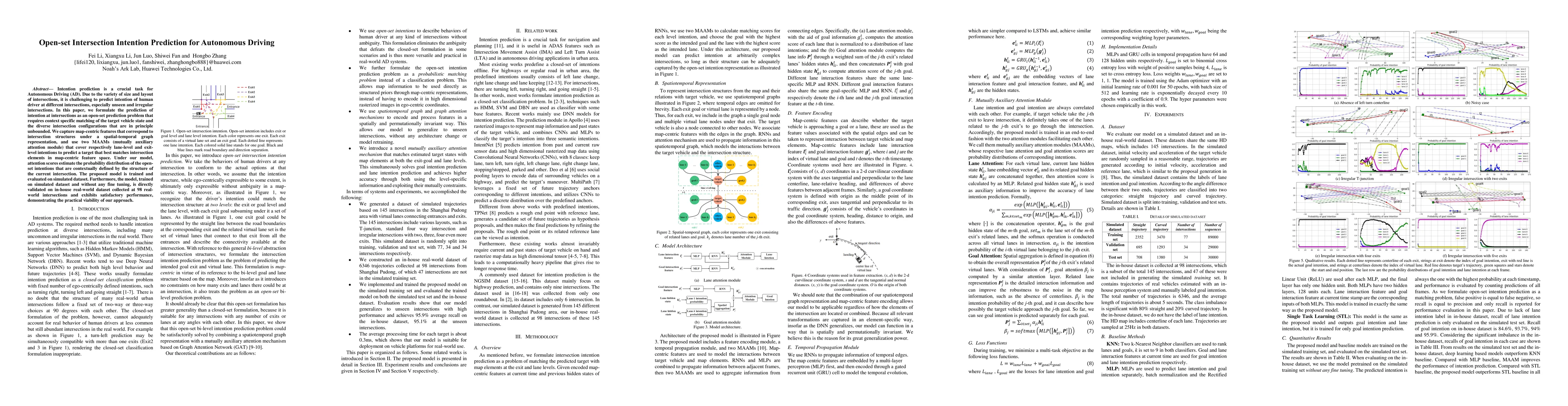 This paper proposes an open-set intention prediction model for autonomous driving at intersections, utilizing spatial-temporal graph features and two mutually auxiliary attention modules to predict driver intentions. The model shows satisfactory performance on both simulated and real-world data without fine-tuning, demonstrating its practical applicability.