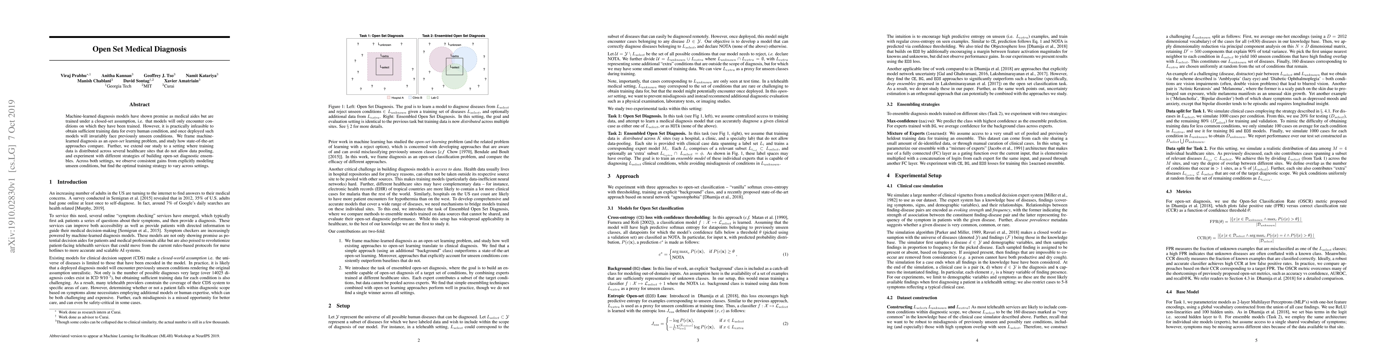 Researchers investigated machine-learned diagnosis models that can handle unseen medical conditions, finding that explicitly modeling these conditions leads to consistent gains in accuracy across different settings.
