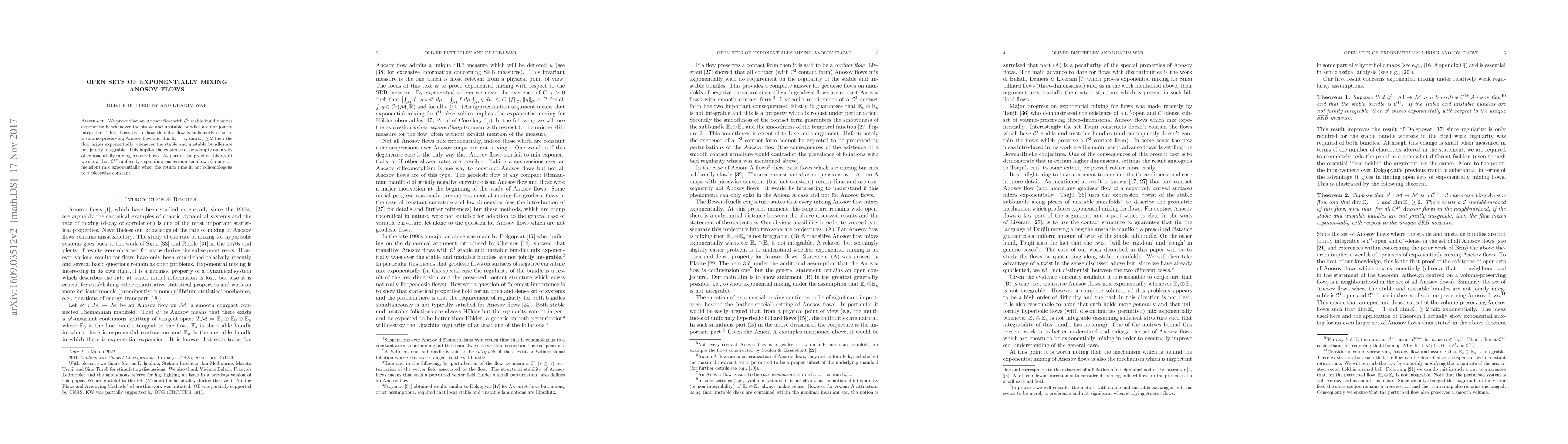 We prove that an Anosov flow with $\mathcal{C}^{1}$ stable bundle mixes exponentially whenever the stable and unstable bundles are not jointly integrable. This allows us to show that if a flow is sufficiently close to a volume-preserving Anosov flow and $\operatorname{dim} \mathbb{E}_s = 1$, $\operatorname{dim} \mathbb{E}_u \geq 2$ then the flow mixes exponentially whenever the stable and unstable bundles are not jointly integrable.This implies the existence of non-empty open sets of exponentially mixing Anosov flows. As part of the proof of this result we show that $\mathcal{C}^{1+}$ uniformly-expanding suspension semiflows (in any dimension) mix exponentially when the return time in not cohomologous to a piecewise constant.