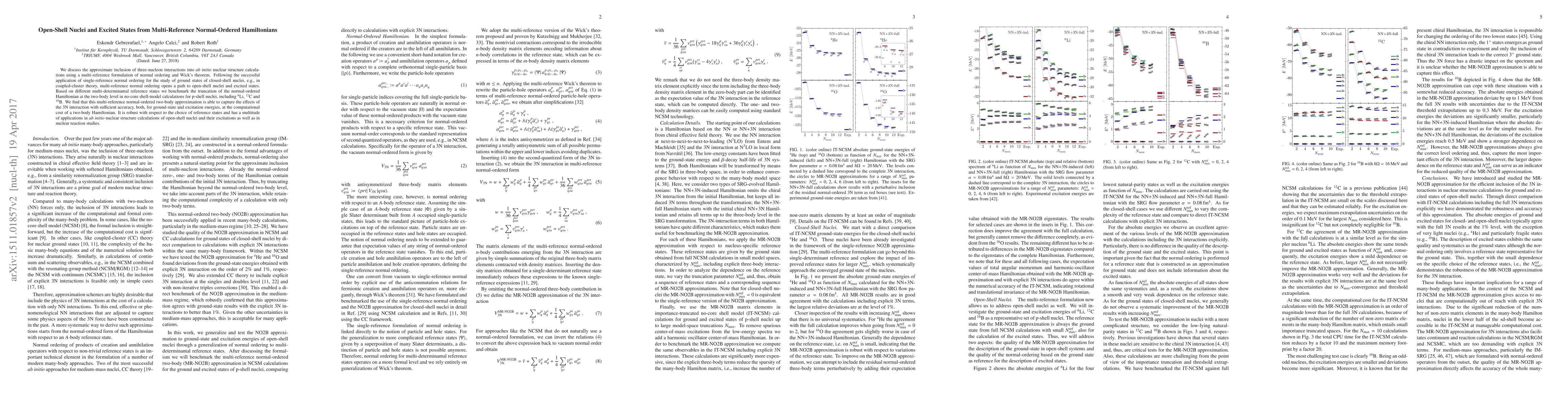 This paper introduces a multi-reference normal-ordered Hamiltonian approach to include three-nucleon interactions in ab initio nuclear structure calculations, demonstrating its effectiveness for open-shell nuclei and excited states. The method is shown to accurately capture 3N interaction effects at the cost of a two-body Hamiltonian, with applications in nuclear reaction studies.