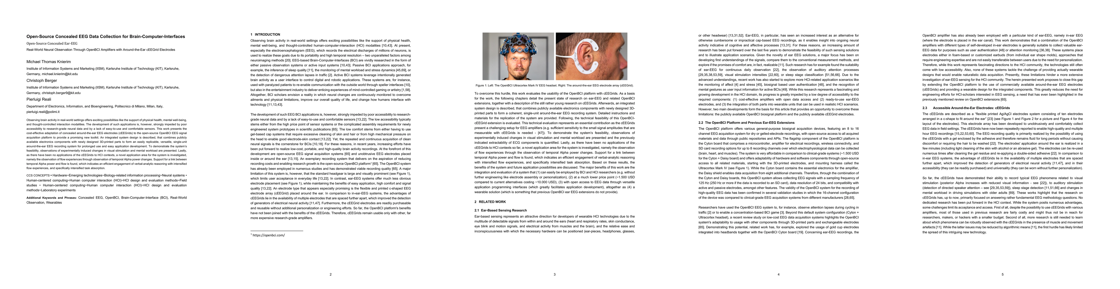 Observing brain activity in real-world settings offers exciting possibilities like the support of physical health, mental well-being, and thought-controlled interaction modalities. The development of such applications is, however, strongly impeded by poor accessibility to research-grade neural data and by a lack of easy-to-use and comfortable sensors. This work presents the cost-effective adaptation of concealed around-the-ear EEG electrodes (cEEGrids) to the open-source OpenBCI EEG signal acquisition platform to provide a promising new toolkit. An integrated system design is described, that combines publicly available electronics components with newly designed 3D-printed parts to form an easily replicable, versatile, single-unit around-the-ear EEG recording system for prolonged use and easy application development. To demonstrate the system's feasibility, observations of experimentally induced changes in visual stimulation and mental workload are presented. Lastly, as there have been no applications of the cEEGrids to HCI contexts, a novel application area for the system is investigated, namely the observation of flow experiences through observation of temporal Alpha power changes. Support for a link between temporal Alpha power and flow is found, which indicates an efficient engagement of verbal-analytic reasoning with intensified flow experiences, and specifically intensified task absorption.