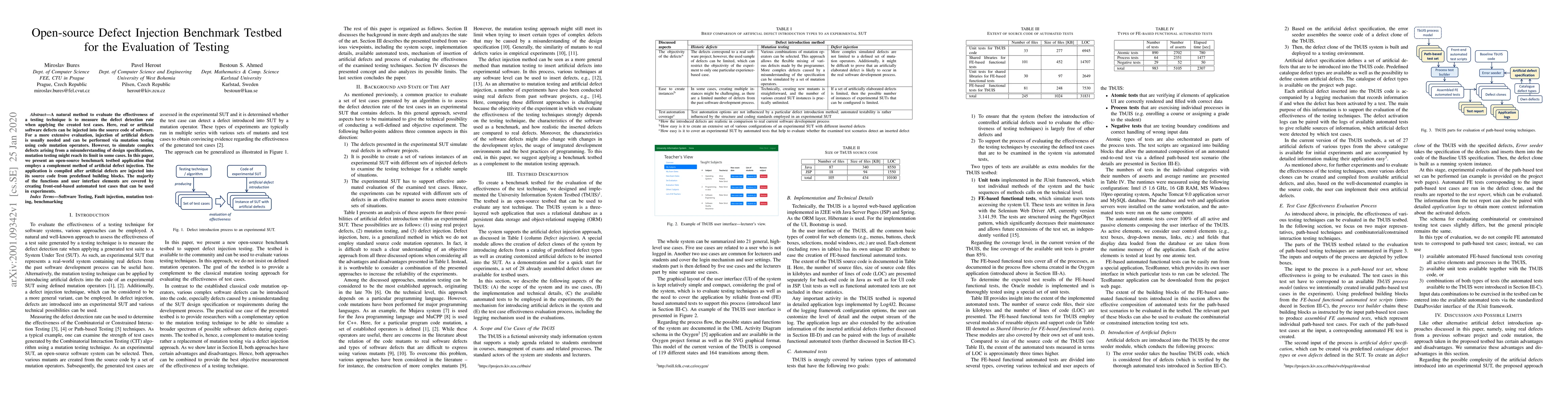 Researchers developed an open-source testbed to evaluate testing techniques by injecting artificial defects into software source code. The tool allows for extensive evaluation of defect detection rates using automated test cases.