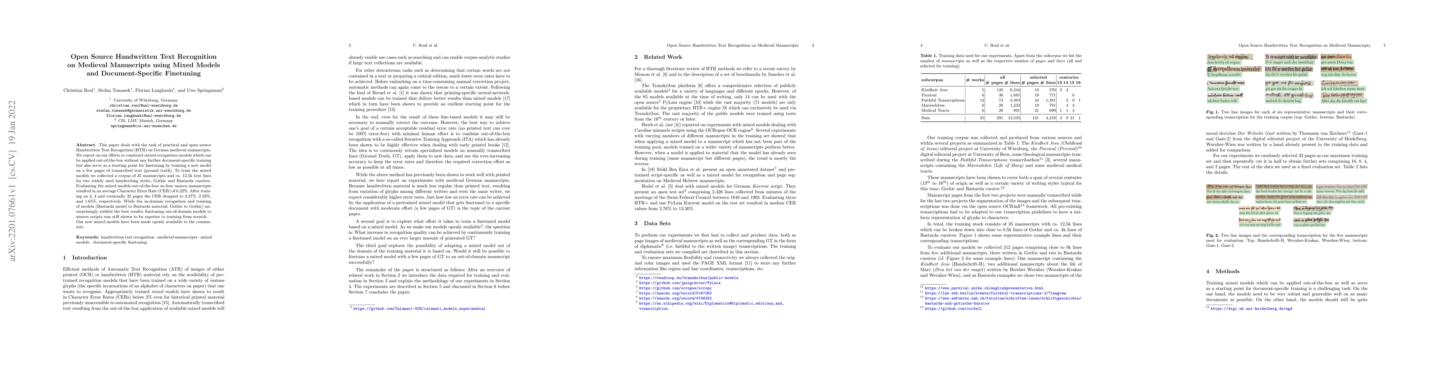 This paper introduces mixed models for open-source Handwritten Text Recognition (HTR) on German medieval manuscripts, achieving effective out-of-the-box performance with further improvements through document-specific finetuning. The models show significant error reduction upon training with more transcribed text, highlighting the benefits of out-of-domain finetuning.