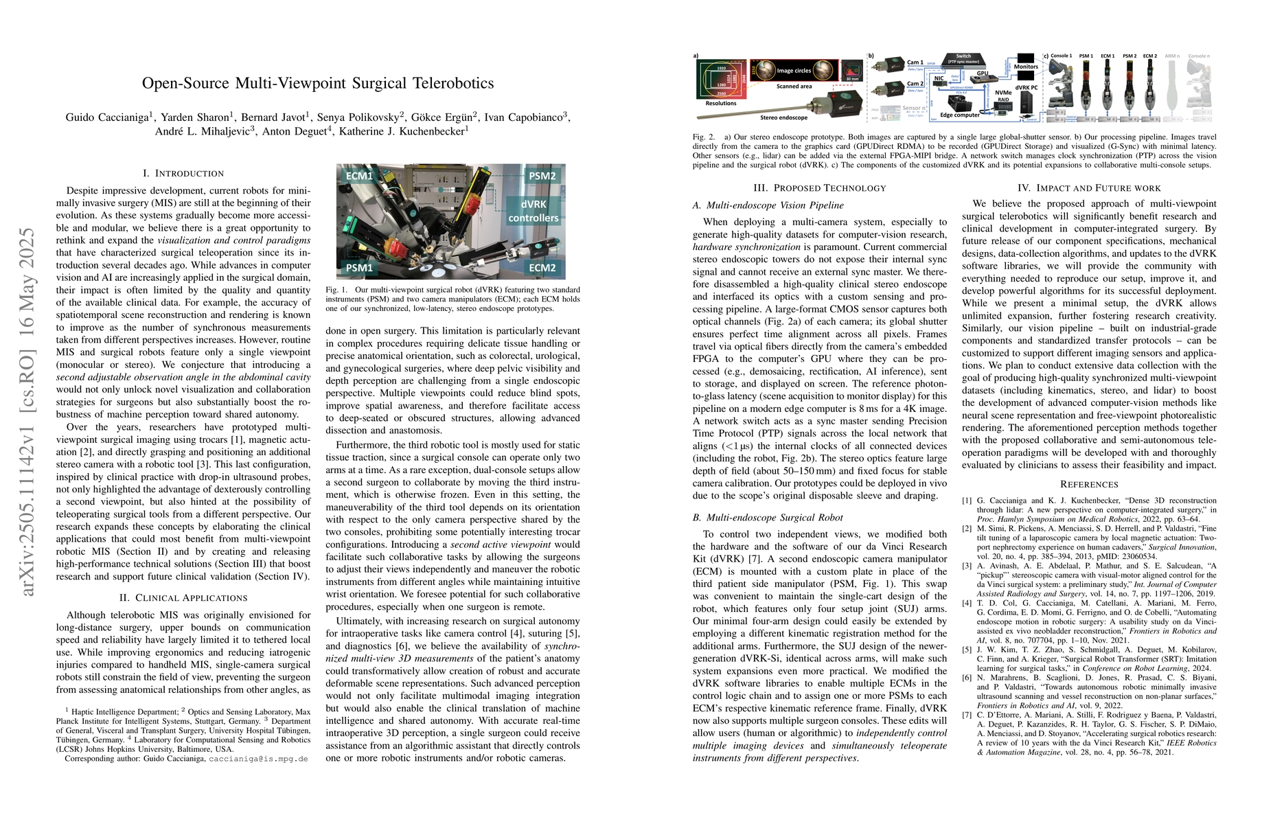 As robots for minimally invasive surgery (MIS) gradually become more accessible and modular, we believe there is a great opportunity to rethink and expand the visualization and control paradigms that have characterized surgical teleoperation since its inception. We conjecture that introducing one or more additional adjustable viewpoints in the abdominal cavity would not only unlock novel visualization and collaboration strategies for surgeons but also substantially boost the robustness of machine perception toward shared autonomy. Immediate advantages include controlling a second viewpoint and teleoperating surgical tools from a different perspective, which would allow collaborating surgeons to adjust their views independently and still maneuver their robotic instruments intuitively. Furthermore, we believe that capturing synchronized multi-view 3D measurements of the patient's anatomy would unlock advanced scene representations. Accurate real-time intraoperative 3D perception will allow algorithmic assistants to directly control one or more robotic instruments and/or robotic cameras. Toward these goals, we are building a synchronized multi-viewpoint, multi-sensor robotic surgery system by integrating high-performance vision components and upgrading the da Vinci Research Kit control logic. This short paper reports a functional summary of our setup and elaborates on its potential impacts in research and future clinical practice. By fully open-sourcing our system, we will enable the research community to reproduce our setup, improve it, and develop powerful algorithms, effectively boosting clinical translation of cutting-edge research.