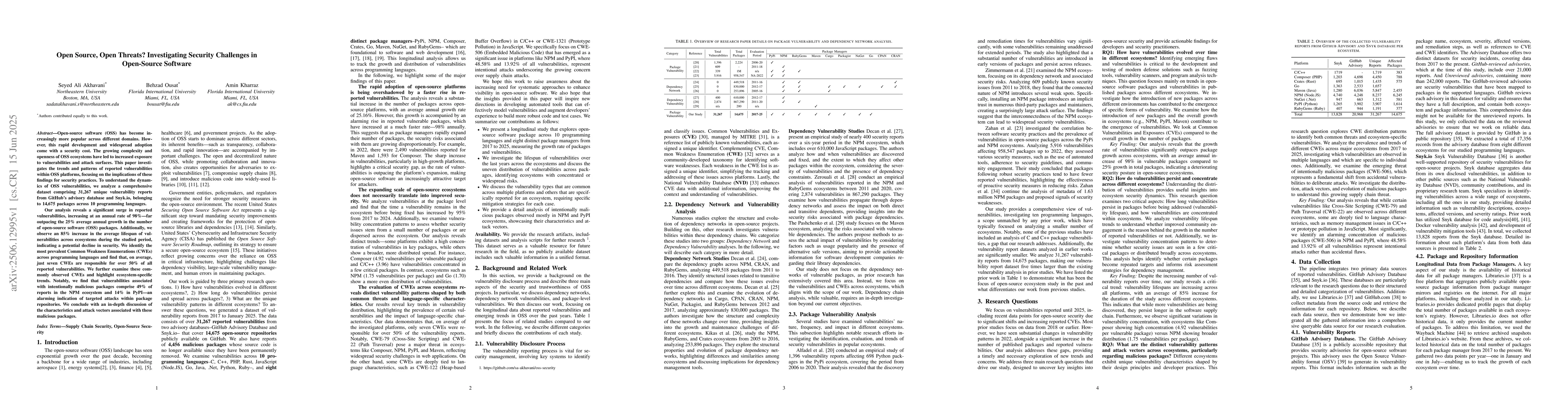 Open-source software (OSS) has become increasingly more popular across different domains. However, this rapid development and widespread adoption come with a security cost. The growing complexity and openness of OSS ecosystems have led to increased exposure to vulnerabilities and attack surfaces. This paper investigates the trends and patterns of reported vulnerabilities within OSS platforms, focusing on the implications of these findings for security practices. To understand the dynamics of OSS vulnerabilities, we analyze a comprehensive dataset comprising 31,267 unique vulnerability reports from GitHub's advisory database and Snyk.io, belonging to 14,675 packages across 10 programming languages. Our analysis reveals a significant surge in reported vulnerabilities, increasing at an annual rate of 98%, far outpacing the 25% average annual growth in the number of open-source software (OSS) packages. Additionally, we observe an 85% increase in the average lifespan of vulnerabilities across ecosystems during the studied period, indicating a potential decline in security. We identify the most prevalent Common Weakness Enumerations (CWEs) across programming languages and find that, on average, just seven CWEs are responsible for over 50% of all reported vulnerabilities. We further examine these commonly observed CWEs and highlight ecosystem-specific trends. Notably, we find that vulnerabilities associated with intentionally malicious packages comprise 49% of reports in the NPM ecosystem and 14% in PyPI, an alarming indication of targeted attacks within package repositories. We conclude with an in-depth discussion of the characteristics and attack vectors associated with these malicious packages.