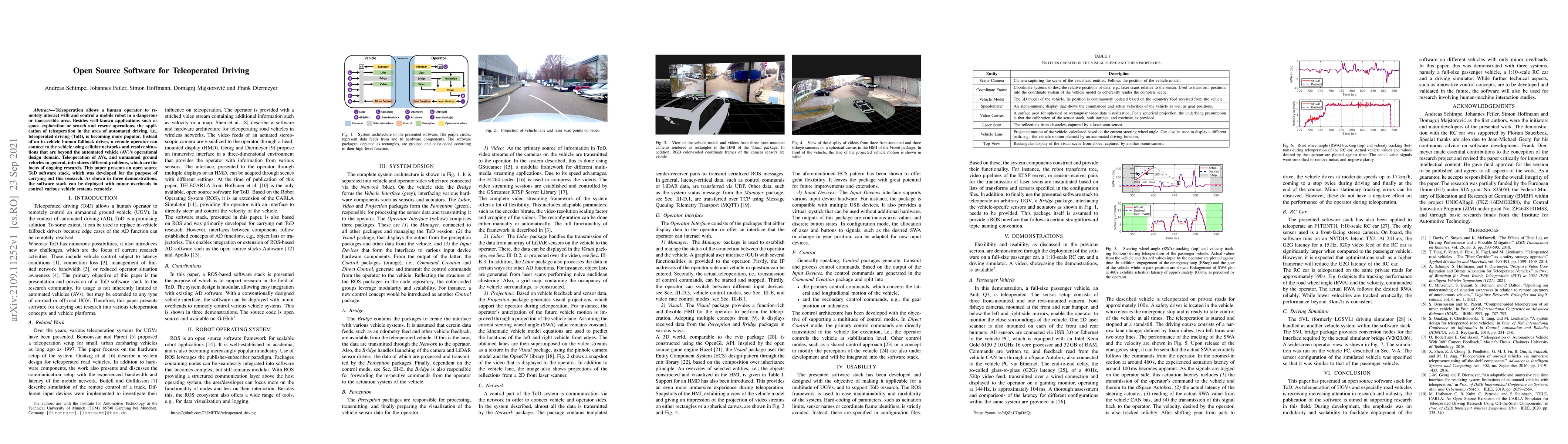 This paper presents an open source software stack for teleoperated driving, enabling remote control of automated vehicles via cellular networks to handle situations beyond their operational design domain. Demonstrated in three scenarios, the software facilitates efficient remote vehicle system control with minimal overhead.