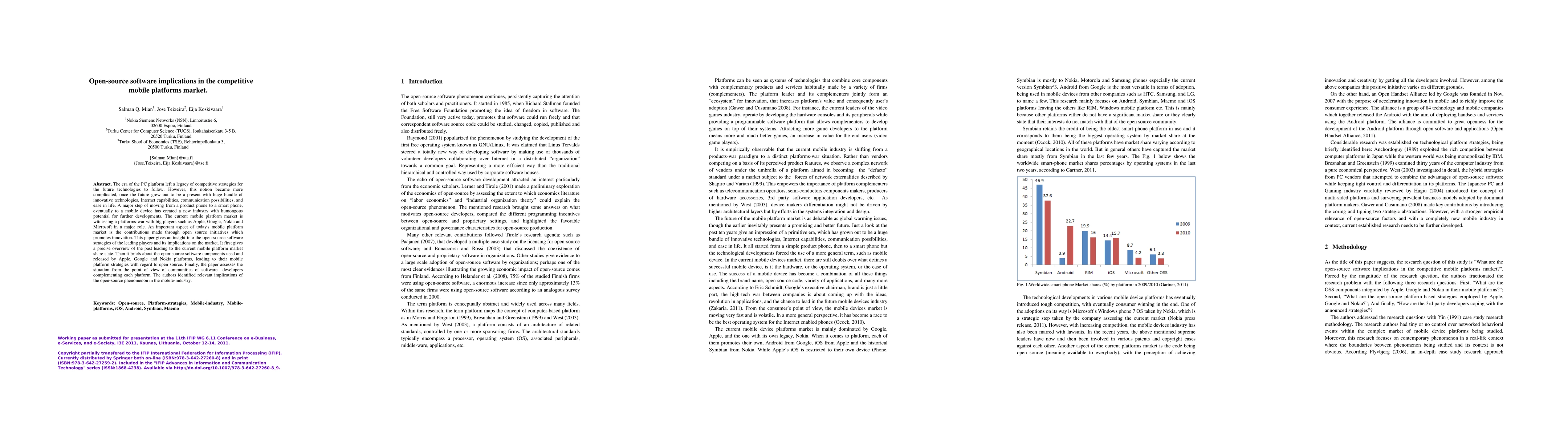 This paper examines the impact of open-source software strategies on the competitive landscape of the mobile platform market, analyzing the approaches of major players like Apple, Google, and Nokia, and assessing the implications for software developer communities. The study highlights the evolving market dynamics and the role of open-source initiatives in fostering innovation.