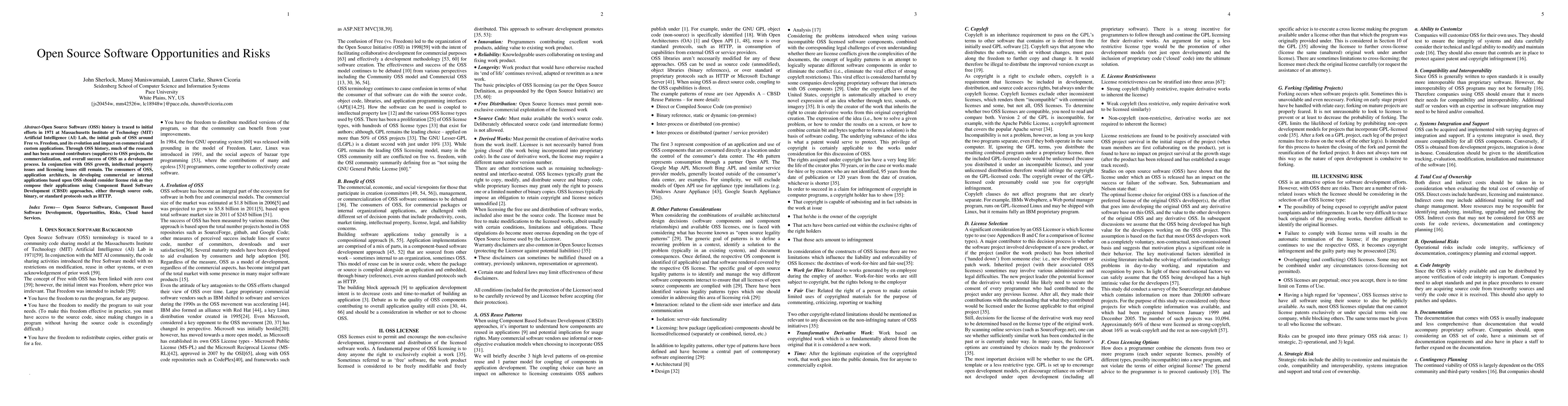 This paper explores the history and evolution of Open Source Software (OSS), emphasizing its origins, commercialization, and the associated intellectual property and licensing challenges. It advises application architects to carefully consider license risks when integrating OSS into commercial or internal applications using Component Based Software Development approaches.