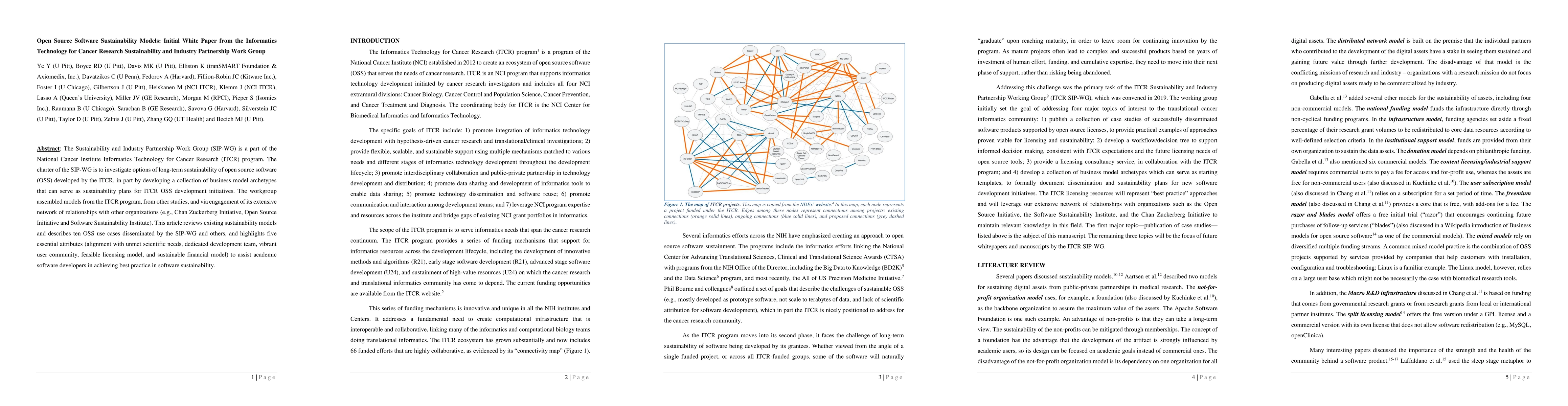 This white paper from the SIP-WG explores long-term sustainability strategies for open source software (OSS) developed by the ITCR program, presenting ten use cases and five essential attributes for successful OSS sustainability. The workgroup gathered insights from various organizations to develop business model archetypes for OSS initiatives.