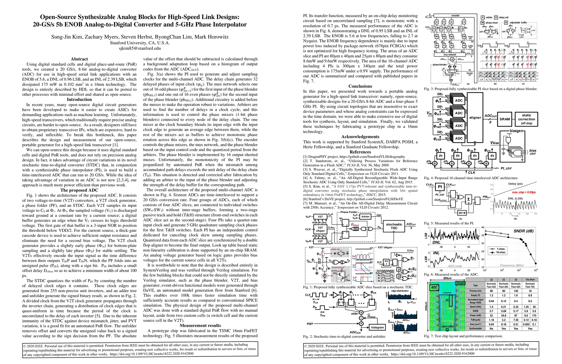 Researchers developed a high-speed analog-to-digital converter and phase interpolator for serial link applications, achieving 20 GS/s and 5 GHz capabilities with minimal power consumption.