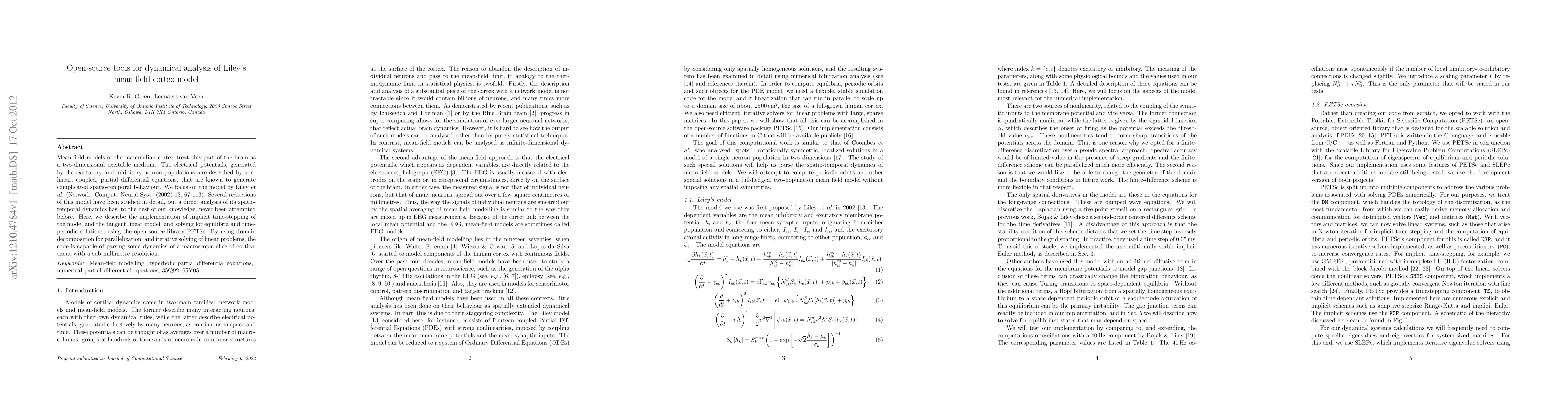 Researchers developed an open-source tool to analyze Liley's mean-field cortex model, a complex brain model that simulates electrical potentials in neurons, and found it can solve dynamics with high resolution.