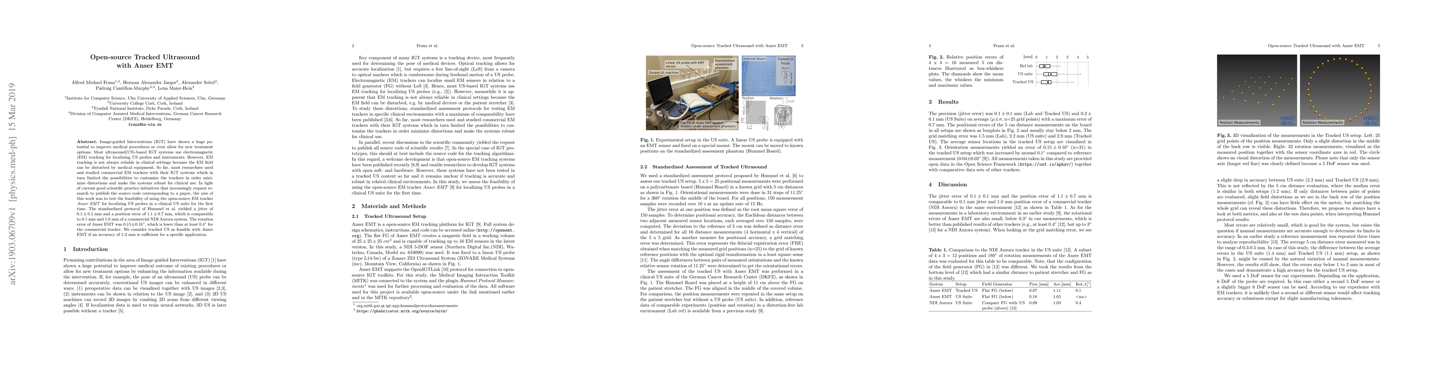 Image-guided Interventions (IGT) have shown a huge potential to improve medical procedures or even allow for new treatment options. Most ultrasound(US)-based IGT systems use electromagnetic (EM) tracking for localizing US probes and instruments. However, EM tracking is not always reliable in clinical settings because the EM field can be disturbed by medical equipment. So far, most researchers used and studied commercial EM trackers with their IGT systems which in turn limited the possibilities to customize the trackers in order minimize distortions and make the systems robust for clinical use. In light of current good scientific practice initiatives that increasingly request research to publish the source code corresponding to a paper, the aim of this work was to test the feasibility of using the open-source EM tracker Anser EMT for localizing US probes in a clinical US suite for the first time. The standardized protocol of Hummel et al. yielded a jitter of 0.1$\pm$0.1 mm and a position error of 1.1$\pm$0.7 mm, which is comparable to 0.1 mm and 1.0 mm of a commercial NDI Aurora system. The rotation error of Anser EMT was 0.15$\pm$0.16{\deg}, which is lower than at least 0.4{\deg} for the commercial tracker. We consider tracked US as feasible with Anser EMT if an accuracy of 1-2 mm is sufficient for a specific application.