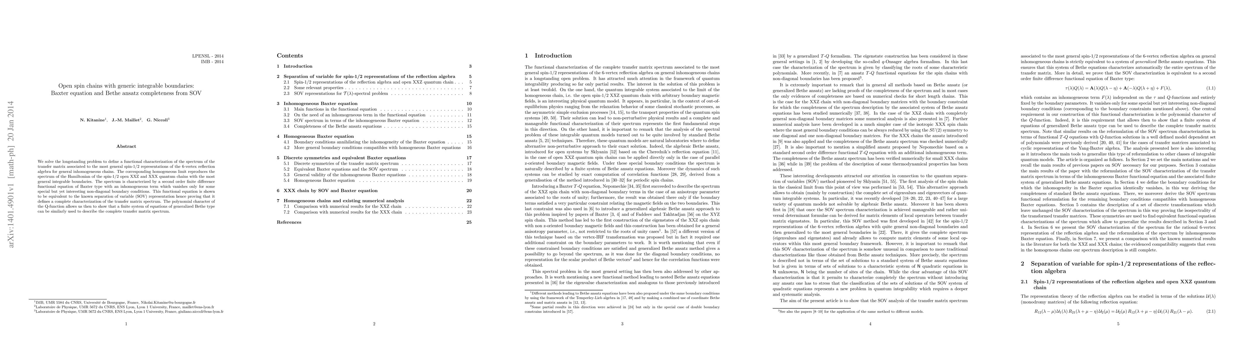 Researchers solved a longstanding problem in quantum physics by developing a functional characterization of the spectrum of open spin chains, using a second-order finite difference equation and showing it is equivalent to a known representation, proving its completeness.