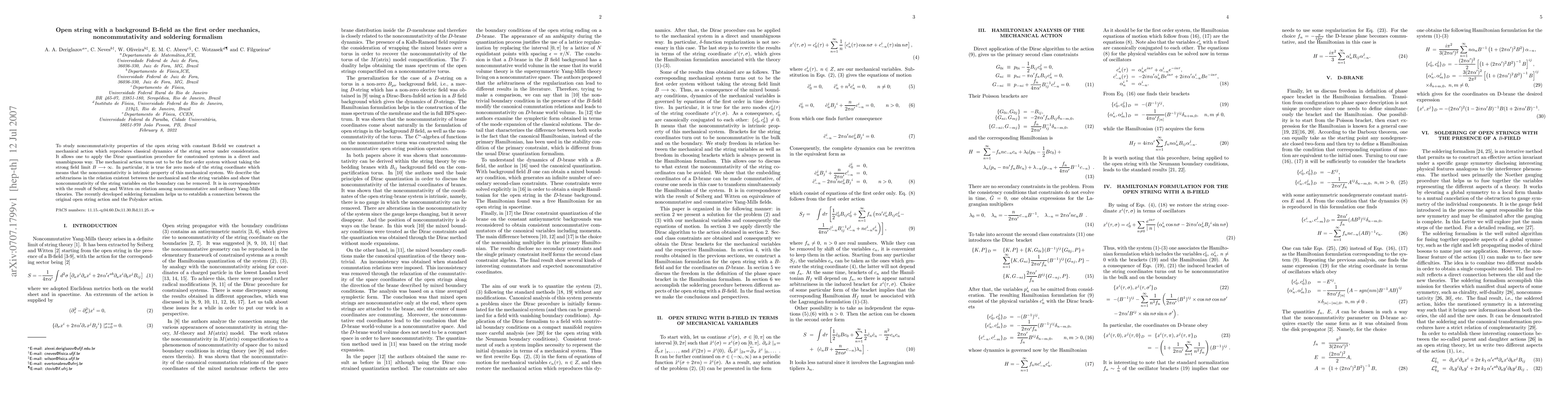 This paper constructs a first-order mechanical action to study the noncommutativity of an open string in a constant B-field, employing the Dirac quantization method for constrained systems. It reveals that noncommutativity is intrinsic to the string's zero mode and aligns with Seiberg-Witten results on noncommutative Yang-Mills theories, using a developed soldering formalism for action equivalence.