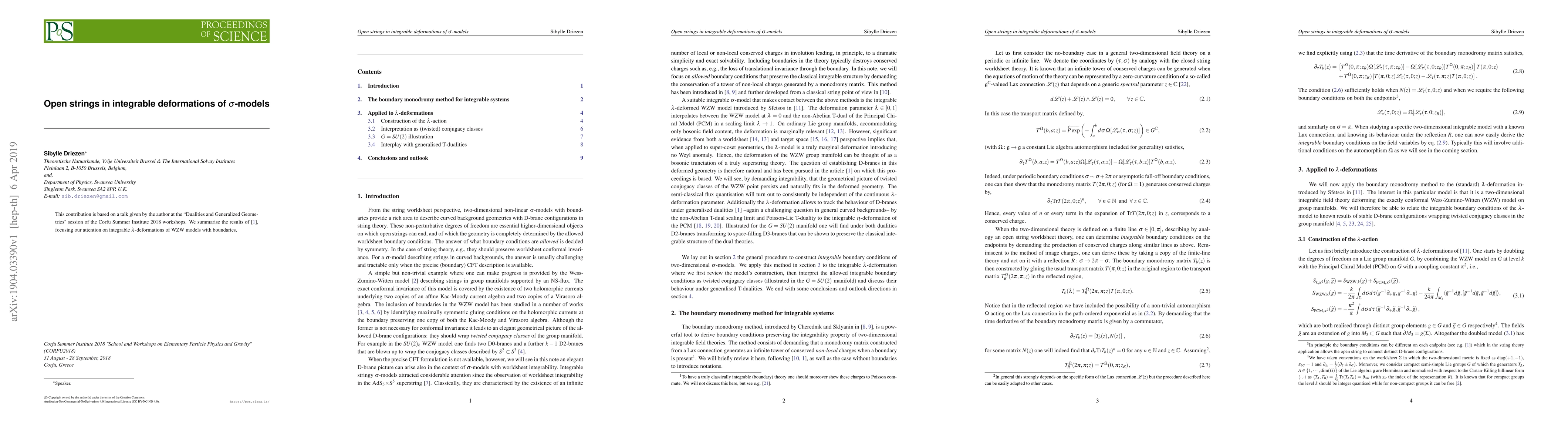 This paper reviews integrable deformations of Wess-Zumino-Witten (WZW) models with boundaries, specifically focusing on $\lambda$-deformations and their implications for open strings within the context of $\sigma$-models. The discussion is based on a presentation at the Corfu Summer Institute 2018.