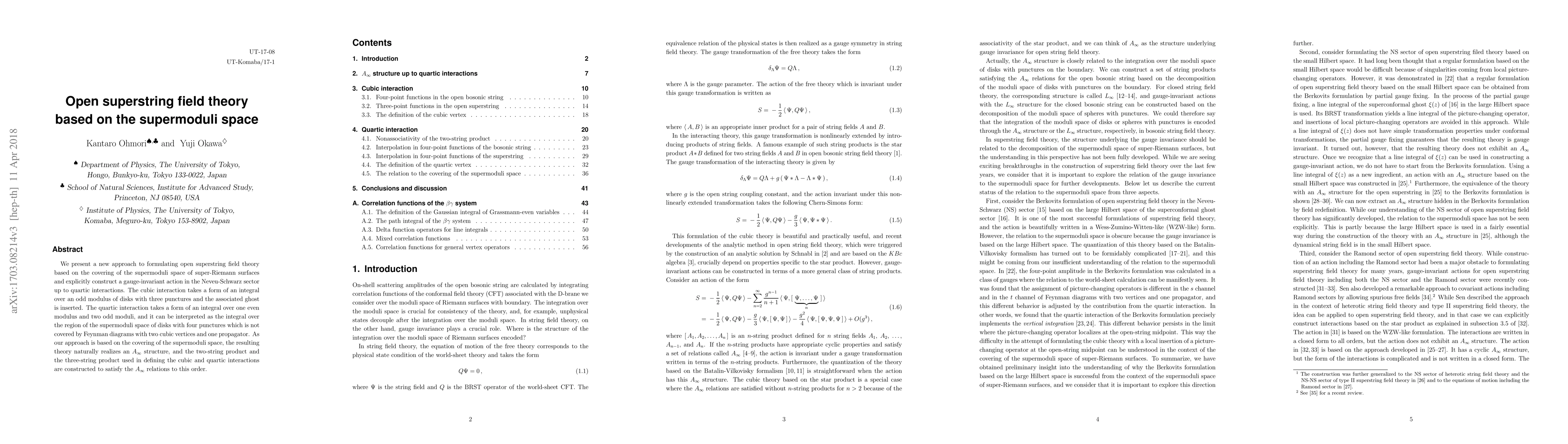 We present a new approach to formulating open superstring field theory based on the covering of the supermoduli space of super-Riemann surfaces and explicitly construct a gauge-invariant action in the Neveu-Schwarz sector up to quartic interactions. The cubic interaction takes a form of an integral over an odd modulus of disks with three punctures and the associated ghost is inserted. The quartic interaction takes a form of an integral over one even modulus and two odd moduli, and it can be interpreted as the integral over the region of the supermoduli space of disks with four punctures which is not covered by Feynman diagrams with two cubic vertices and one propagator. As our approach is based on the covering of the supermoduli space, the resulting theory naturally realizes an $A_\infty$ structure, and the two-string product and the three-string product used in defining the cubic and quartic interactions are constructed to satisfy the $A_\infty$ relations to this order.