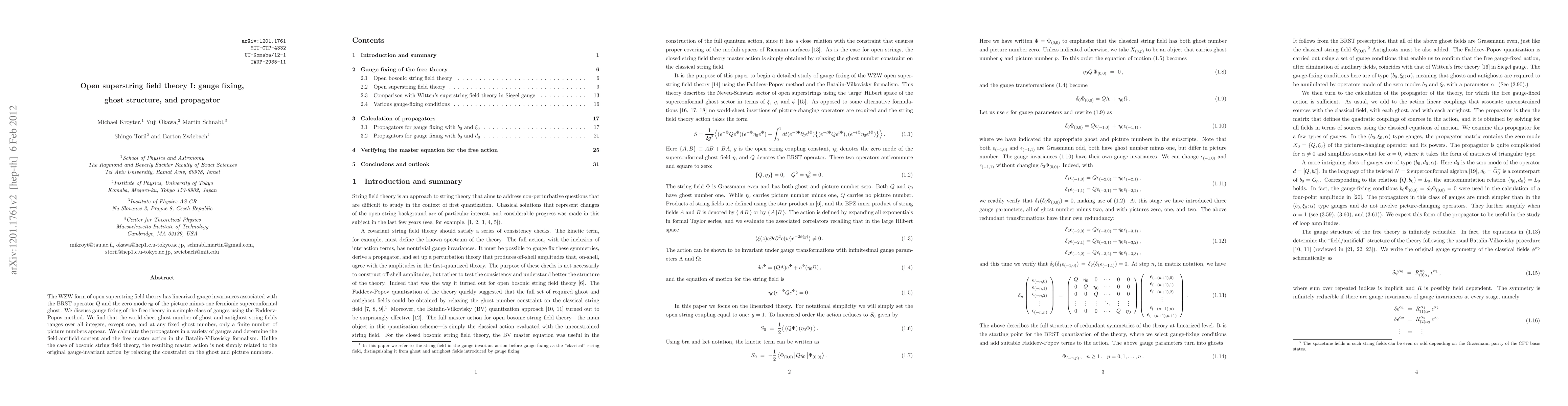 The WZW form of open superstring field theory has linearized gauge invariances associated with the BRST operator Q and the zero mode eta_0 of the picture minus-one fermionic superconformal ghost. We discuss gauge fixing of the free theory in a simple class of gauges using the Faddeev-Popov method. We find that the world-sheet ghost number of ghost and antighost string fields ranges over all integers, except one, and at any fixed ghost number, only a finite number of picture numbers appear. We calculate the propagators in a variety of gauges and determine the field-antifield content and the free master action in the Batalin-Vilkovisky formalism. Unlike the case of bosonic string field theory, the resulting master action is not simply related to the original gauge-invariant action by relaxing the constraint on the ghost and picture numbers.