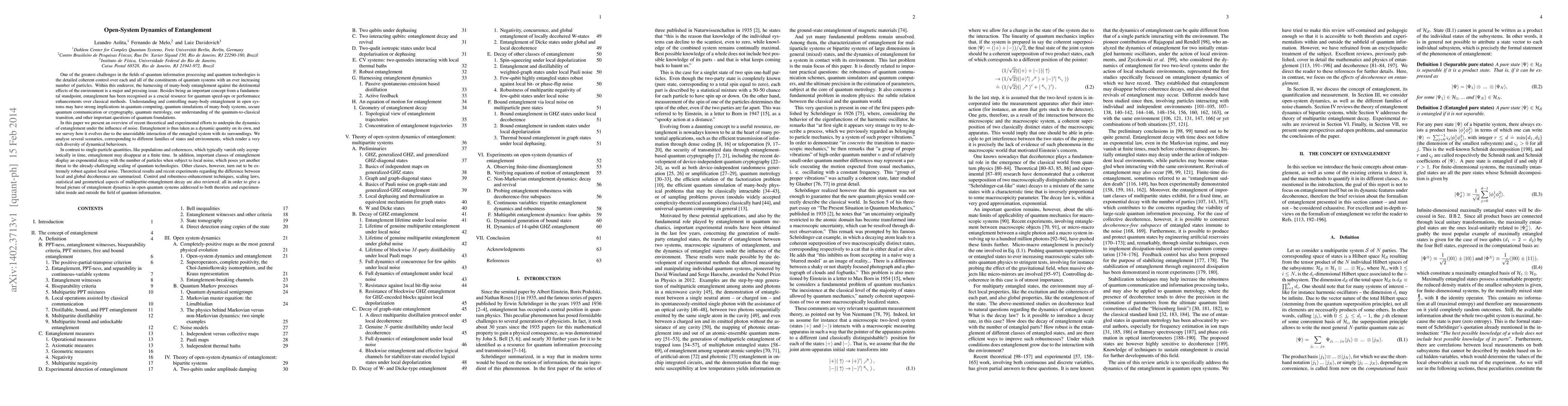 This paper reviews theoretical and experimental efforts to understand the dynamics of entanglement in open quantum systems, highlighting how entanglement evolves and decays due to interactions with the environment. It discusses various scenarios and scaling laws, emphasizing the challenges and techniques for maintaining entanglement in quantum technologies.