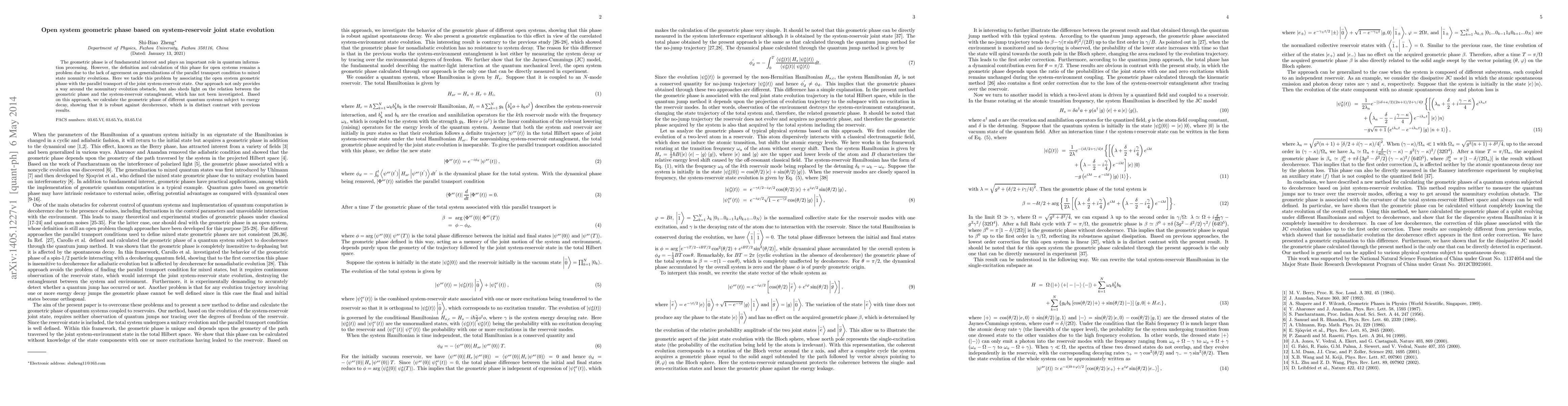 This paper proposes a method to define and calculate the geometric phase in open quantum systems by considering the parallel transport of the system-reservoir joint state. It reveals a connection between the geometric phase and system-reservoir entanglement, demonstrating that the phase is robust against decoherence, unlike previous findings.