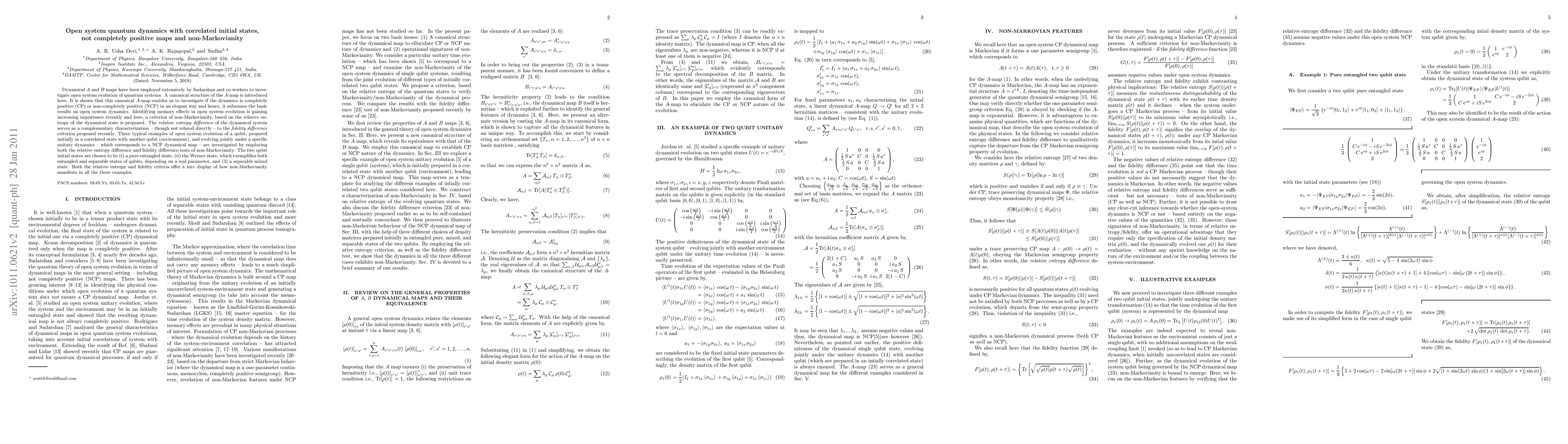 This paper introduces a canonical A-map to investigate open system quantum dynamics, distinguishing between completely positive and non-completely positive evolutions. It proposes a non-Markovianity criterion based on relative entropy difference, demonstrating its application through three examples of qubit systems evolving under non-completely positive maps, showing how non-Markovianity manifests in different initial correlated states.