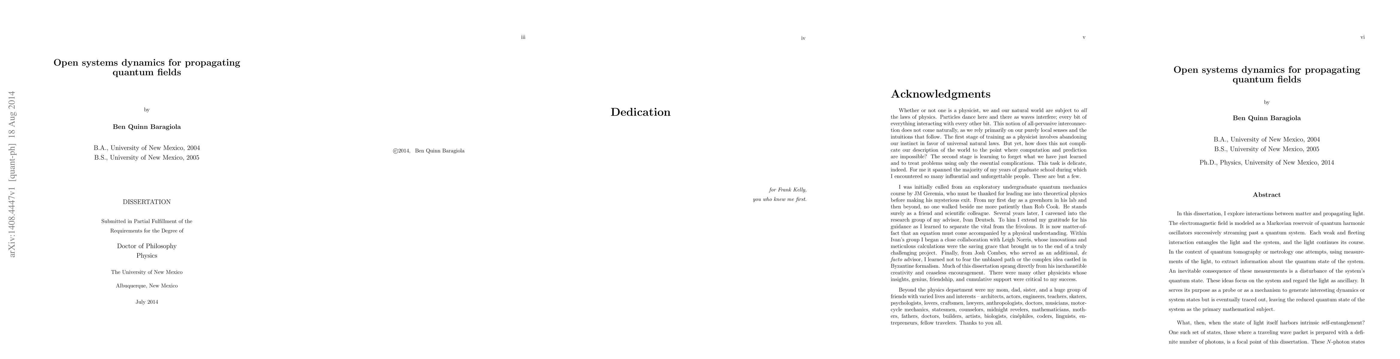 In this dissertation, I explore interactions between matter and propagating light. The electromagnetic field is modeled as a reservoir of quantum harmonic oscillators successively streaming past a quantum system. Each weak and fleeting interaction entangles the light and the system, and the light continues its course. Within the framework of open quantum systems, the light is eventually traced out, leaving the reduced quantum state of the system as the primary mathematical subject. Two major results are presented. The first is a master equation approach for a quantum system interacting with a traveling wave packet prepared with a definite number of photons. In contrast to quasi-classical states, such as coherent or thermal fields, these N-photon states possess temporal mode entanglement, and local interactions in time have nonlocal consequences. The second is a model for a three-dimensional light-matter interface for an atomic ensemble interacting with a paraxial laser beam and its application to the generation of QND spin squeezing. Both coherent and incoherent dynamics due to spatially inhomogeneous atom-light coupling across the ensemble are accounted for. Measurement of paraxially scattered light can generate squeezing of an atomic spin wave, while diffusely scattered photons lead to spatially local decoherence.
