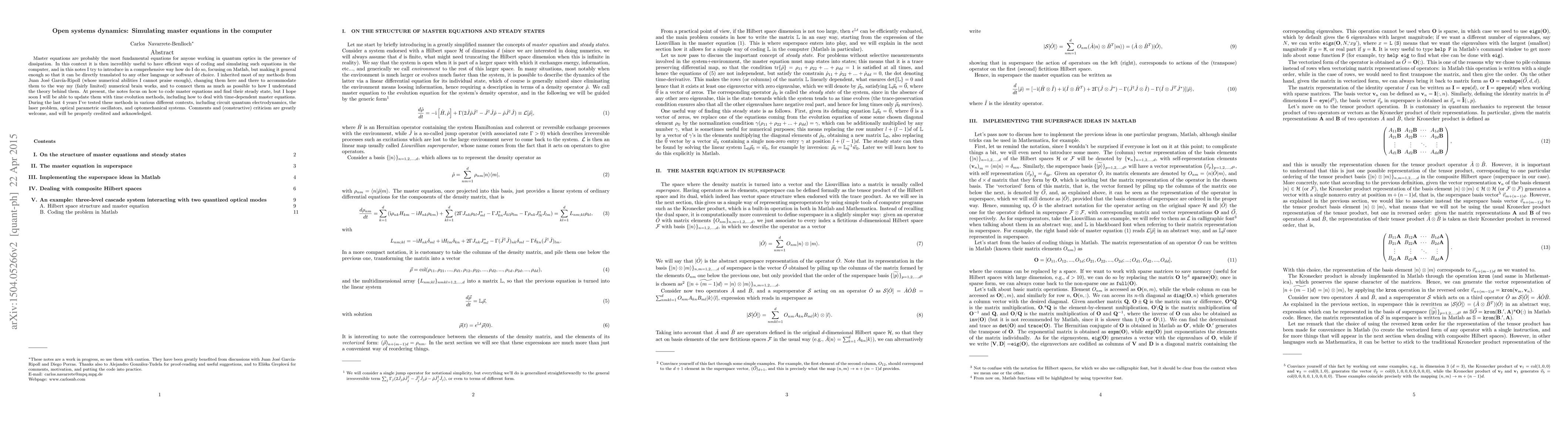This paper provides a comprehensive guide on coding and simulating master equations in Matlab for quantum optics systems with dissipation. The author adapts methods from Juan José García-Ripoll to find steady states and plans to extend the notes to include time-dependent master equations.