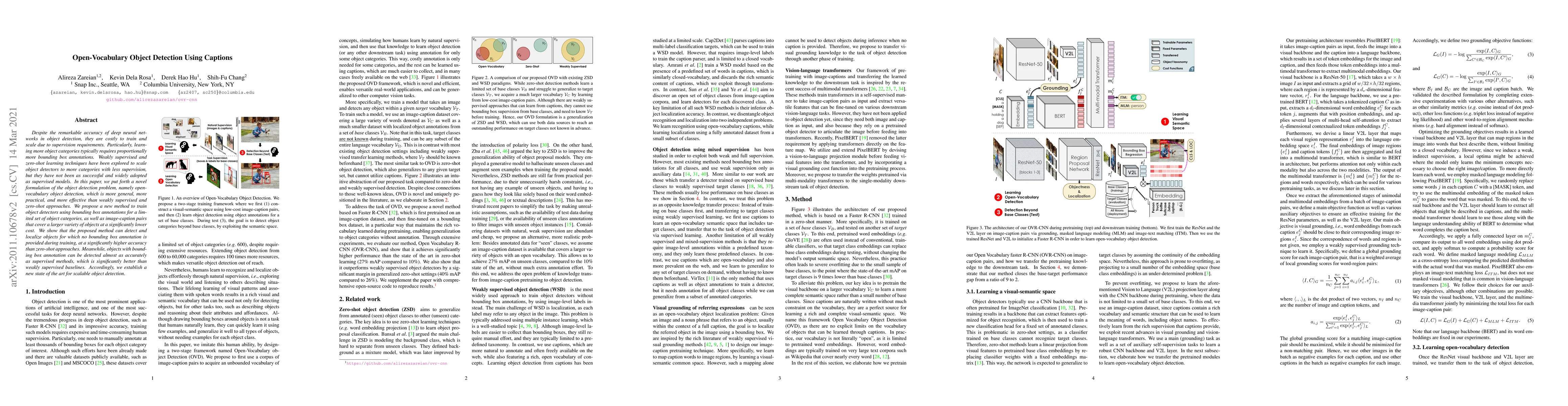 This paper introduces open-vocabulary object detection, a novel approach that leverages image-caption pairs to detect and localize objects without requiring extensive bounding box annotations. The proposed method achieves higher accuracy than zero-shot learning and outperforms weakly supervised baselines, setting a new state of the art for scalable object detection.