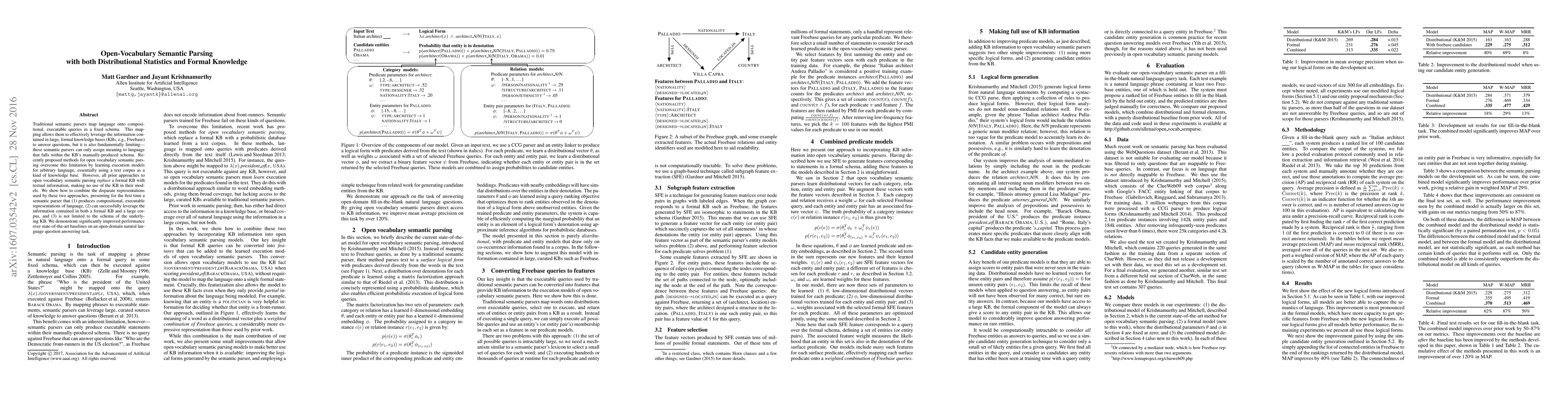 This paper proposes a novel semantic parser that combines distributional statistics from a text corpus with formal knowledge from a knowledge base, enabling it to handle open-vocabulary language while leveraging both sources for improved performance in natural language question answering.