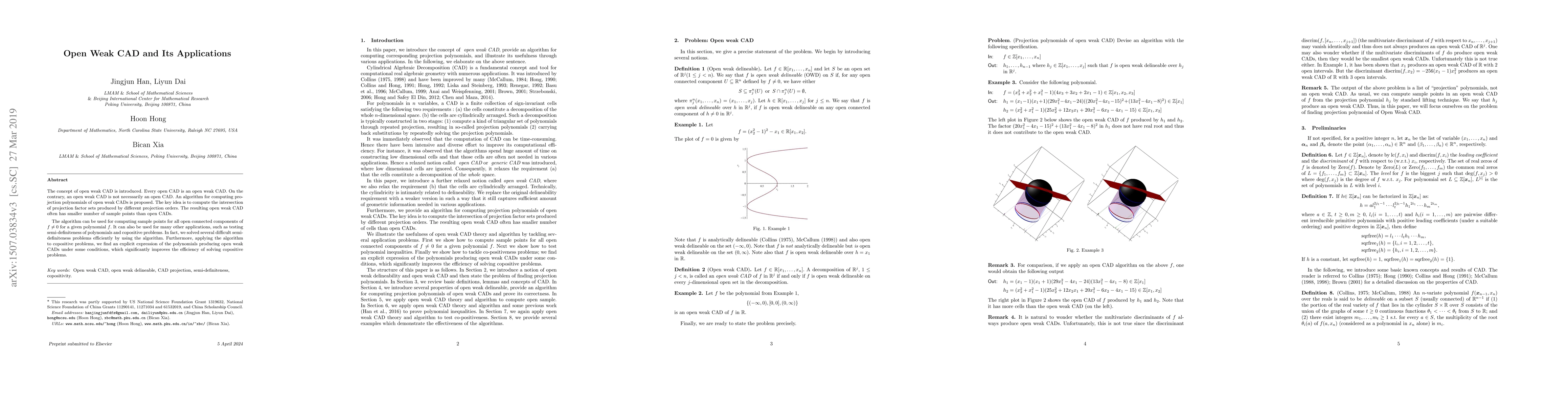 Researchers introduce open weak CADs, a concept that combines openness with reduced sample points, and propose an algorithm to compute projection polynomials for efficient solutions in semi-definiteness problems and copositive problems.