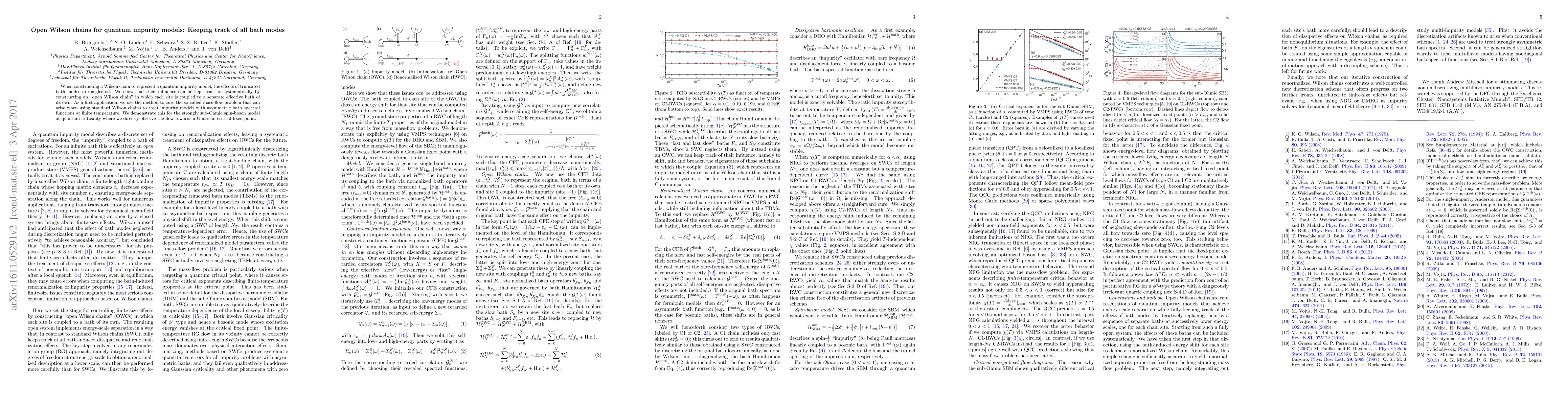 This paper introduces an "open Wilson chain" method to systematically account for the effects of truncated bath modes in quantum impurity models, addressing the mass-flow problem in asymmetric bath spectral functions. The approach is demonstrated in the strongly sub-Ohmic spin-boson model at quantum criticality, showing a flow towards a Gaussian critical fixed point.