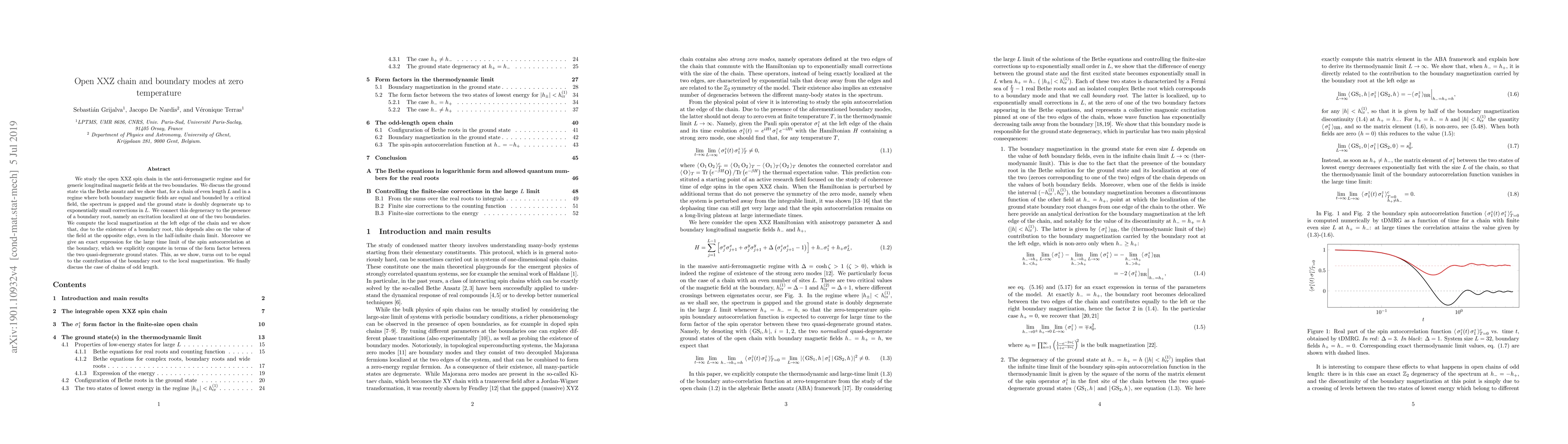 The paper studies the open XXZ spin chain with equal boundary magnetic fields, finding a gapped spectrum with doubly degenerate ground states and a boundary root responsible for magnetization dependence on edge field values.