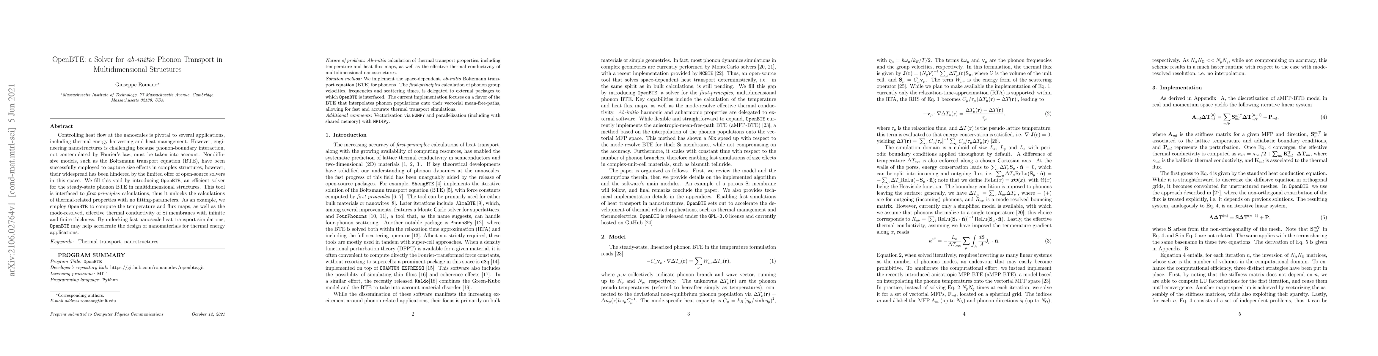 OpenBTE is an open-source solver for phonon transport in nanostructures, enabling fast simulations of heat flow at the nanoscale and unlocking design opportunities for thermal energy applications.