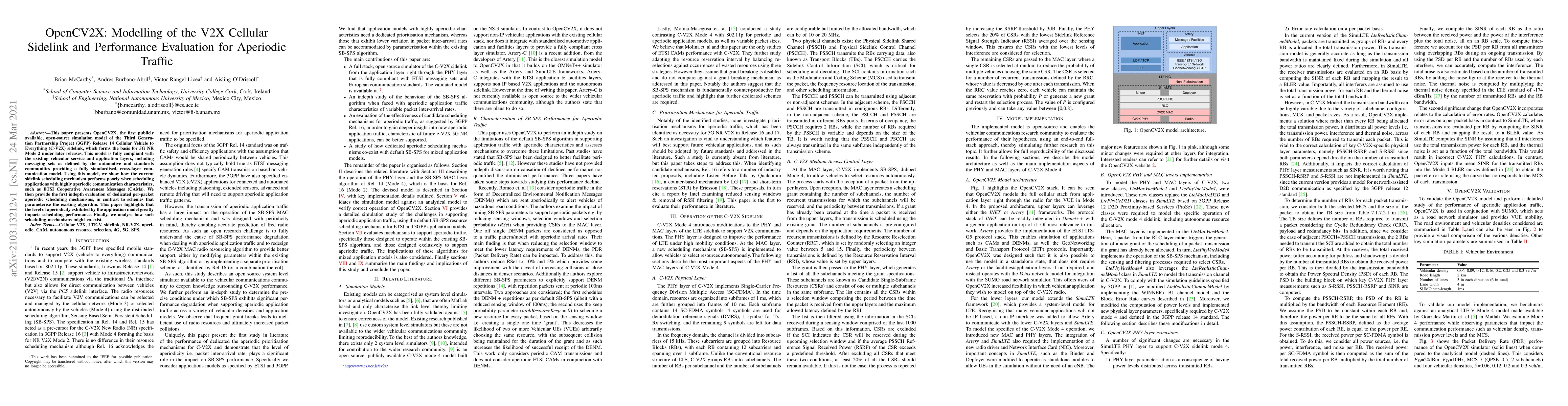 OpenCV2X, an open-source simulation model for 3GPP Release 14 C-V2X sidelink, and an in-depth evaluation of dedicated per-packet aperiodic scheduling mechanisms.