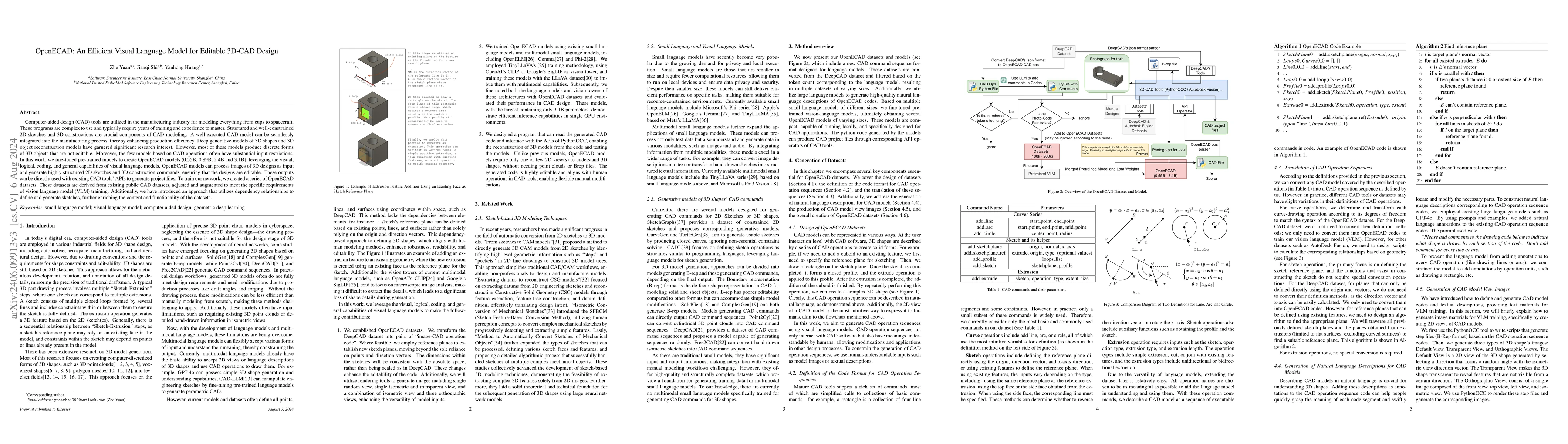OpenECAD fine-tunes pre-trained visual language models to generate structured 2D sketches and 3D construction commands from 3D design images, facilitating integration with existing CAD tools. The approach is trained on an augmented CAD dataset tailored for visual language model training.