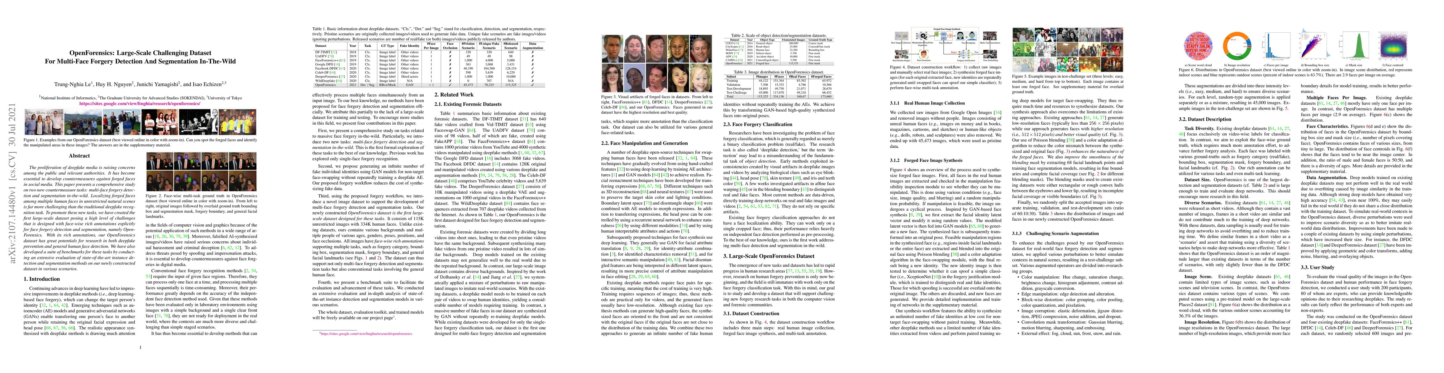 This paper introduces the OpenForensics dataset, a large-scale resource for multi-face forgery detection and segmentation in natural scenes, addressing the challenges posed by deepfake media. The dataset includes rich annotations and benchmarks to facilitate research in deepfake prevention and general human face detection.