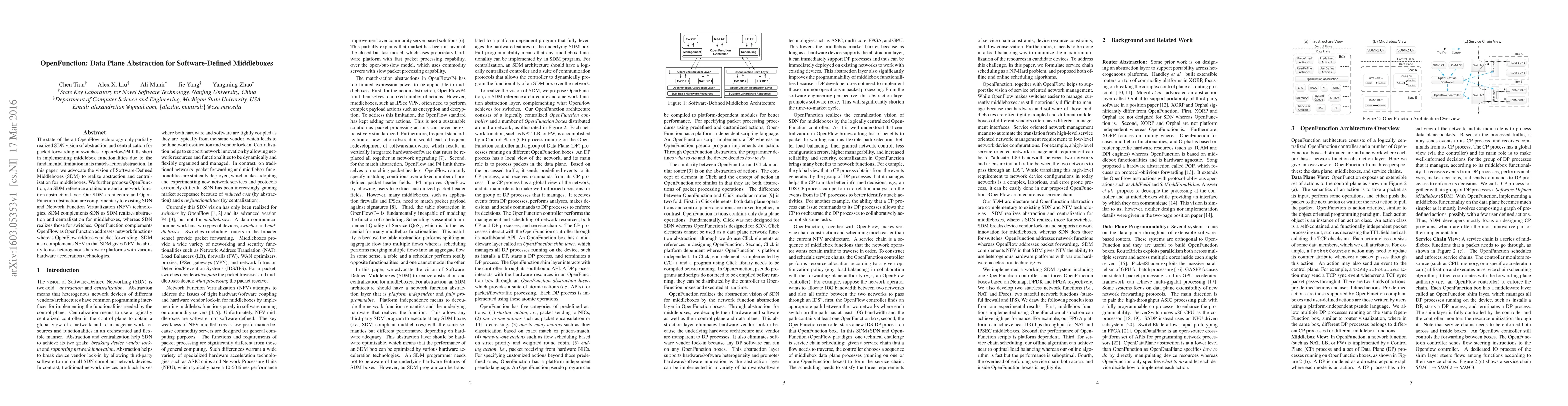 This paper proposes OpenFunction, a new abstraction layer for Software-Defined Middleboxes (SDM) to enhance the centralization and abstraction of middlebox functionalities, complementing existing SDN and NFV technologies. OpenFunction aims to address the limitations of OpenFlow in handling middlebox operations.